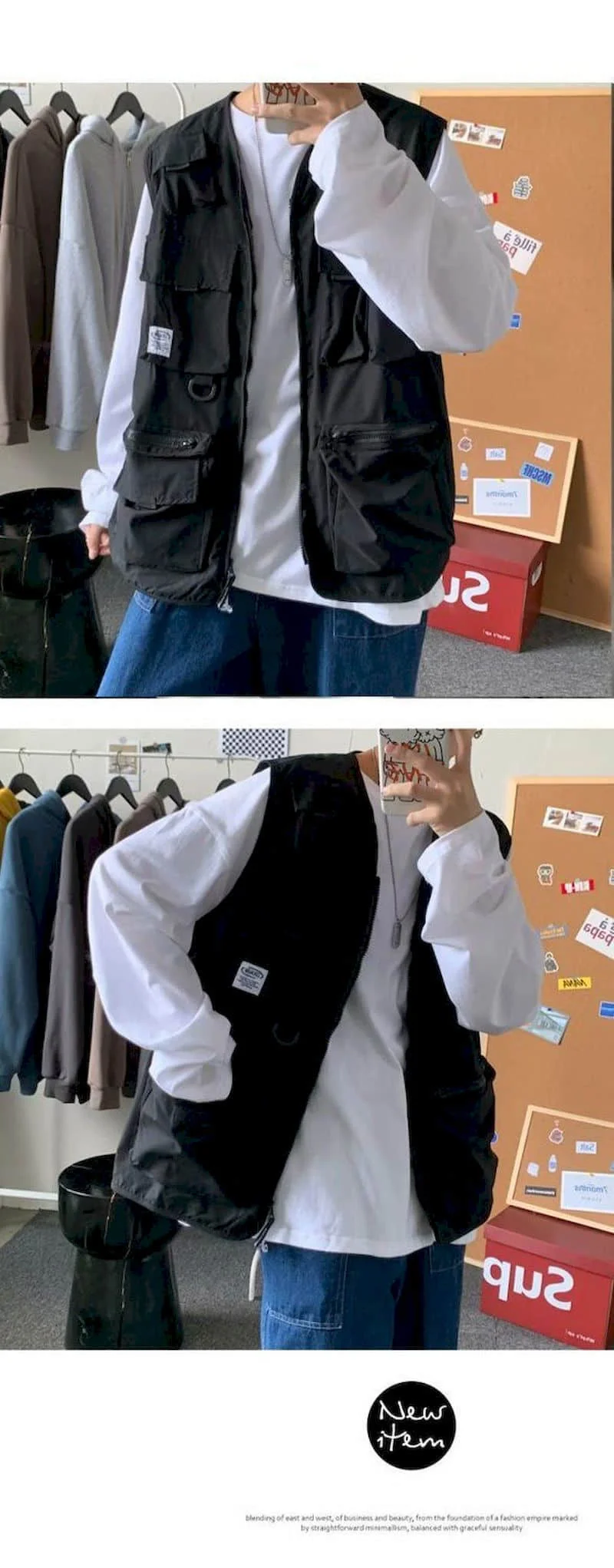 Мужской свитер, жилет, Осенний однотонный вязаный мужской тренд в К...