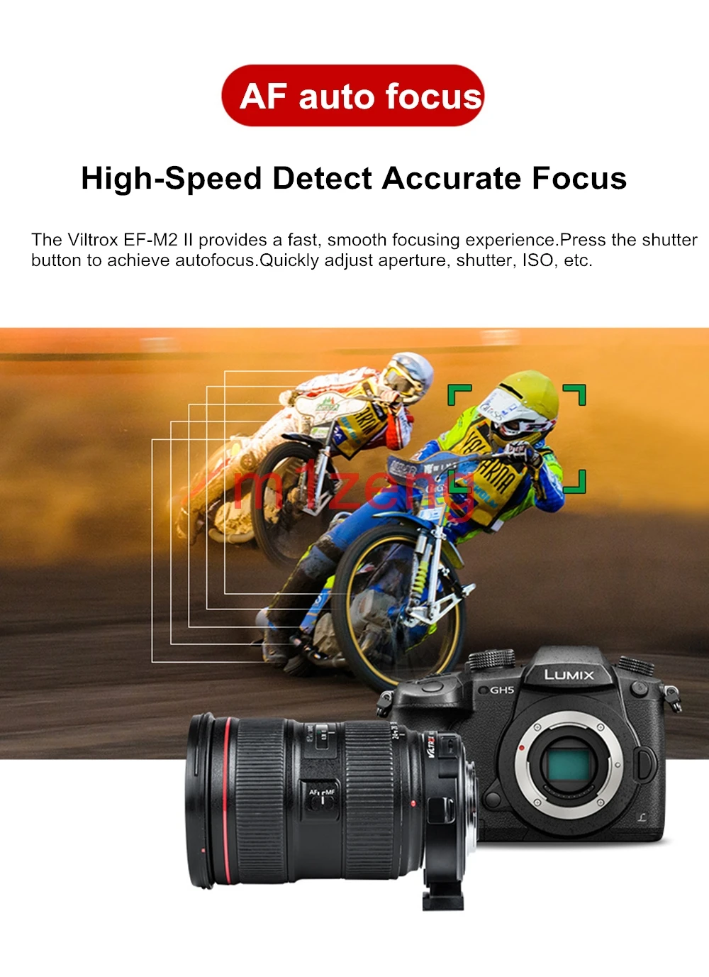 ХарактеристикаВстроенный usb-порт для обновления прошивки адаптера-4 элемента в 4 группах оптика увеличивает светильник на входе одним F стоп и уменьшает фокусное расстояние на x0.71-Выделенный переключатель для выбора между детектором контрастности и режимом автоматического фокуса-Функция автофокусировки контрастности позволяет перемещать гибкое пятно и фокусироваться по рамке и поддерживать фокусировку глаз на конкретной камере #-Автоматическое определение фаз фокусировки позволяет быстрее фокусироваться на большинстве линз.-Высокоточный алюминиевый сплав с хромированным покрытием на обеих монтажных поверхностях для обеспечения гладкой установки и долговечности.Совместимые камеры: для камер серии M4/3Panasonic GH5/GH4/GH3/GH2/GH1/GF9/GF8/GF7/GF6/GF5/GF4/GF3/GF2/GF1/ GX85/GX8/GX7/GX1/G7/G6/G3/G2/G1Olympus E-M10/E-M10II/E-M10III/E-M5II/E-M5/E-M1/E-PL8/E-PL7/E-PL5/E-PL3/E-PL2/PEN-F/E-PM2/E-PM1/E-P5/E-P3/E-P1Посылка со списком1 х EF-M2II адаптерПылезащитная Крышка для объектива-1 шт.1 x Руководство по эксплуатации