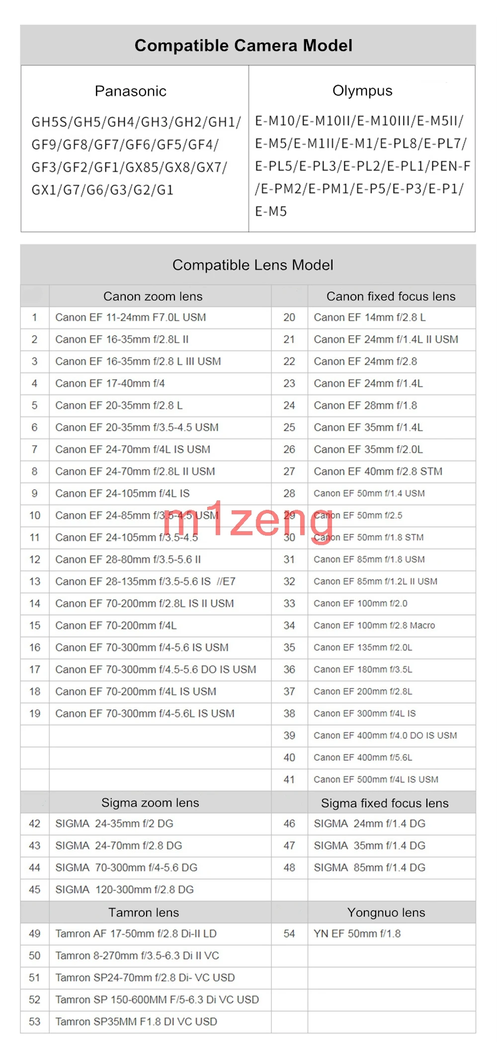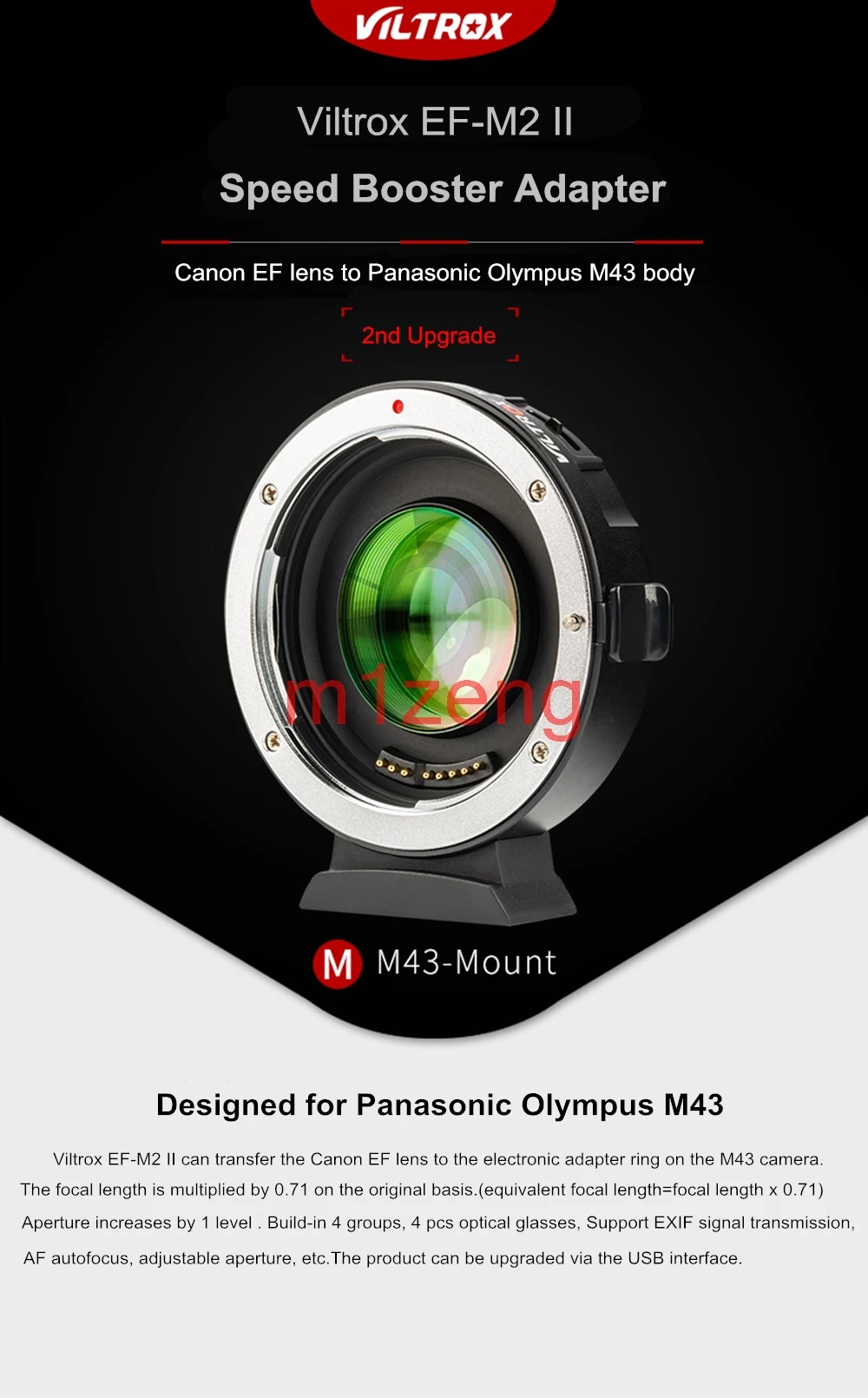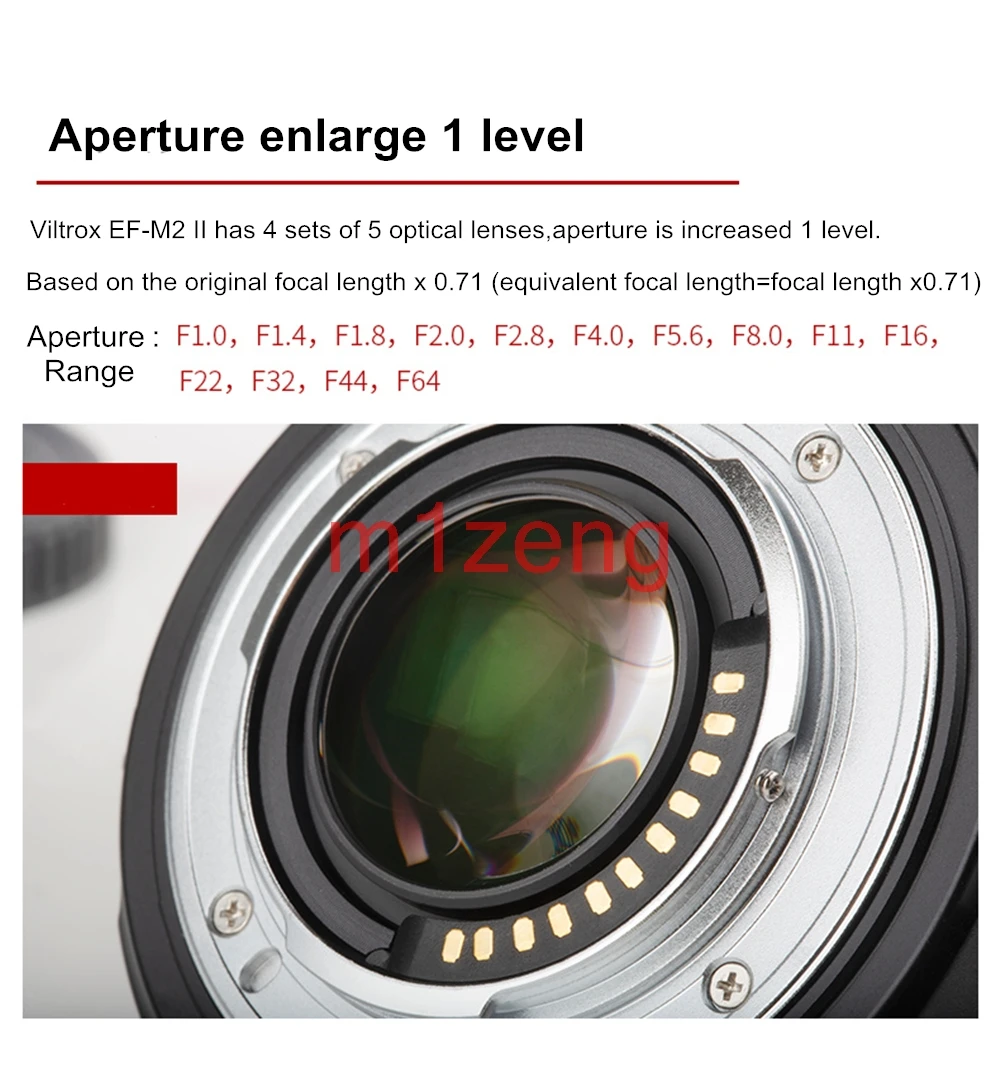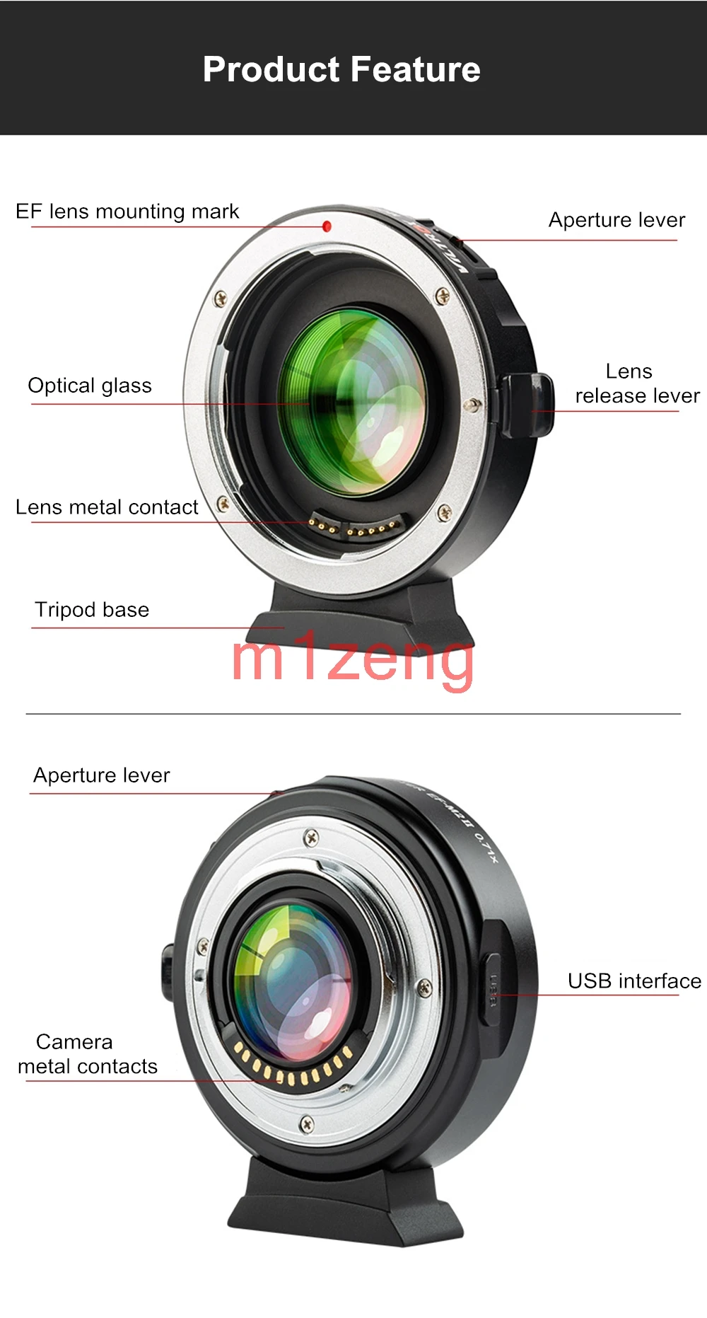 Адаптер для крепления EF-M2II предназначен для Canon EF-mount series lens для использования на камере M43.Плюс 0,71 на основе исходного фокусного расстояния (эквивалентное фокусное расстояние = фокусное расстояние x0,71), что помогает увеличить диафрагму 1 уровня. Встроенный 4 группы, 4 шт оптических очков, AF (автофокус) и регулируемой диафрагмы и т. Д.Чтобы обновить прошивку адаптера, последнюю прошивку можно загрузить с официального сайта, подключить адаптер к компьютеру с помощью usb-кабеля и скопировать файл в память адаптера. Не требуется прикрепить объектив или камеру.Чтобы изменить режим AF, выключите камеру, выньте батарею, Вставьте батарею и включите камеру снова, чтобы камера распознает новый режим AF как новый объектив. Медленный фокус будет происходить на низких концах линз в режиме CDAF