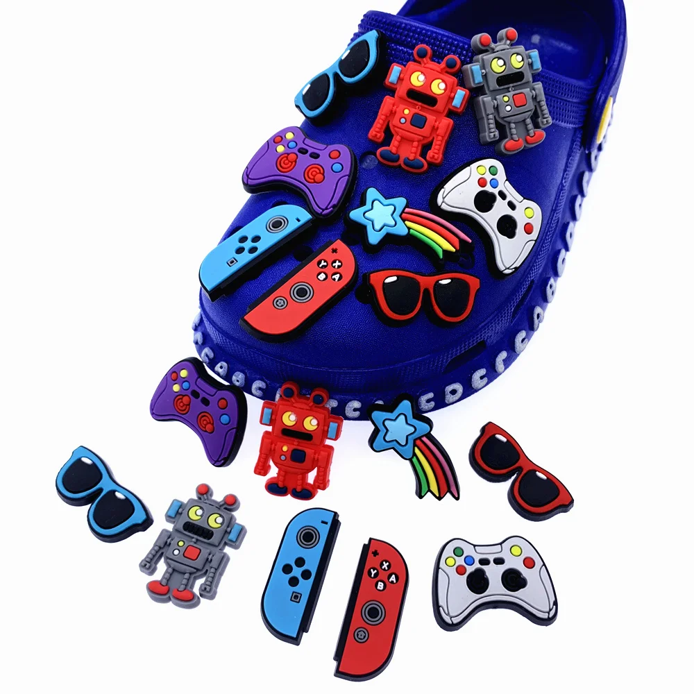 10 шт.компл. Новое поступление, Мультяшные радужные солнцезащитные очки для мальчиков, подвески, робот, игровая консоль, пряжка, украшение, детские подарки на Рождество