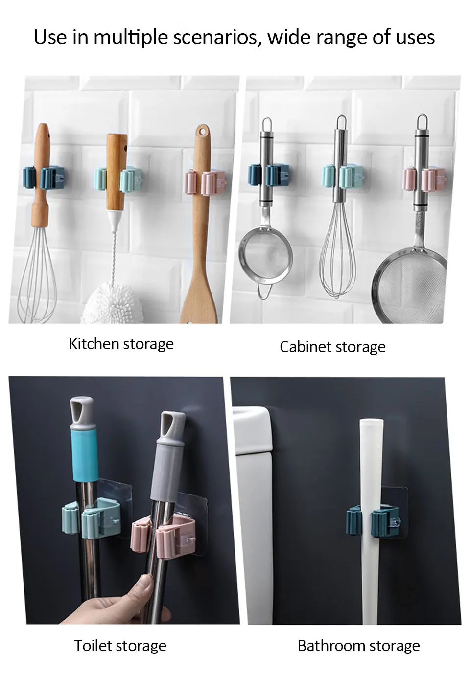 Высококачественная стальная пружина. С одним щелчком безопасное крепление. Четкое расположение бытовой и садовой техники и инструментов. Длительный срок службы Благодаря высококачественной обработке. Износостойкие резиновые ролики и буферы обеспечивают долгий срок службы. Легко снимается, поднимая ручку, вращающиеся шарики автоматически настраиваются на каждую толщину ручки и плотно сжимаются. Имеет широкий спектр инструментов: он не только организует метлы, швабры, но и любой инструмент с крючком. Крепится к стене винтами. Монтажные веники, швабры, лопаты и грабли с легкостью, вместо того, чтобы наклонять веники к стене и в углы.