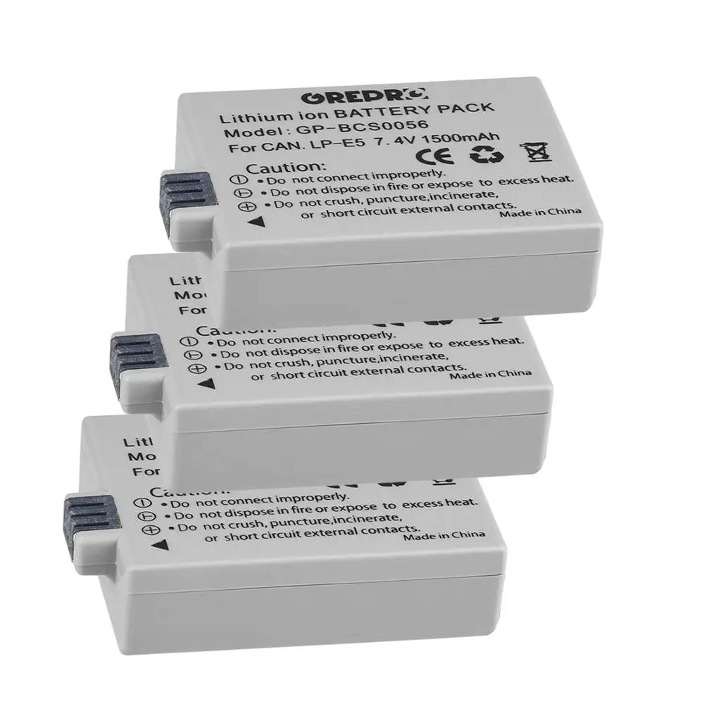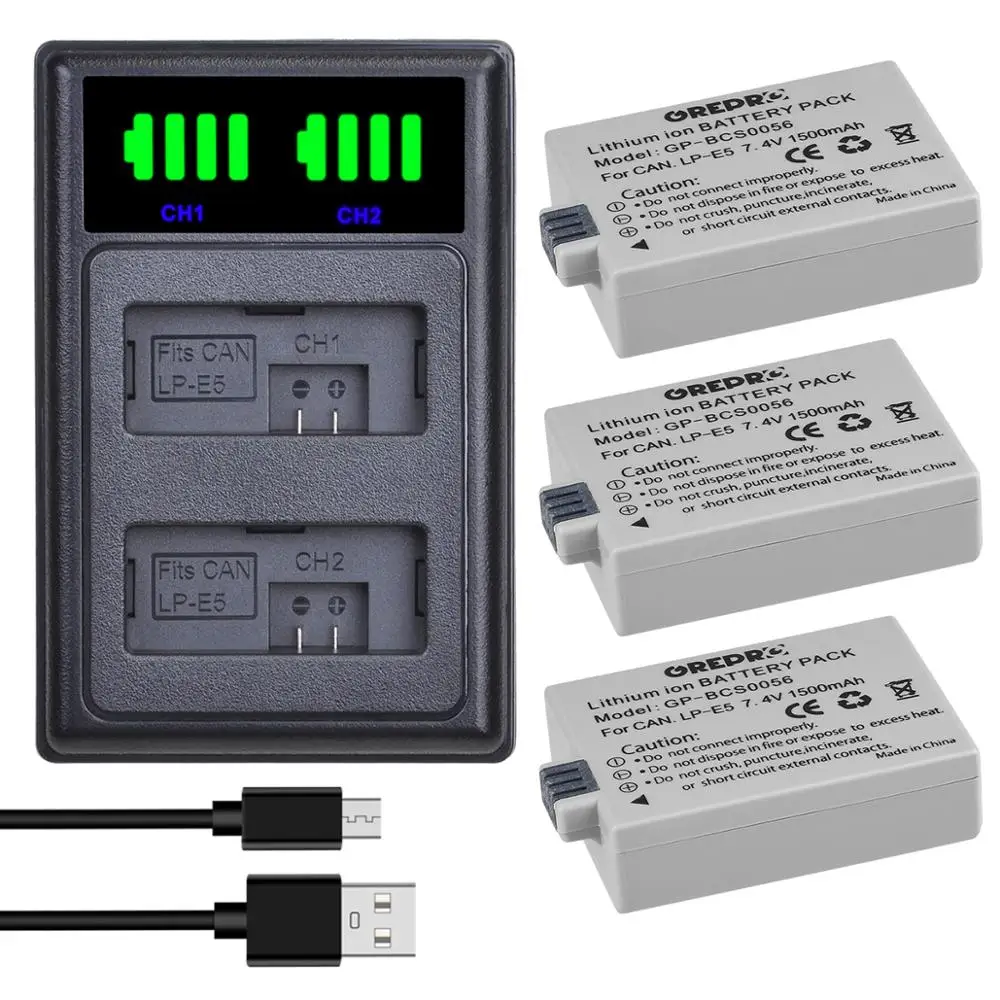 Литийионный аккумулятор 1500 мА ч LPE5 LP-E5 LP E5, 3 шт., двойное зарядное устройство Type-C для Canon 450D, 500D, 1000D, Kiss X2, X3 F, Rebel XSi, Xli, XS, L15