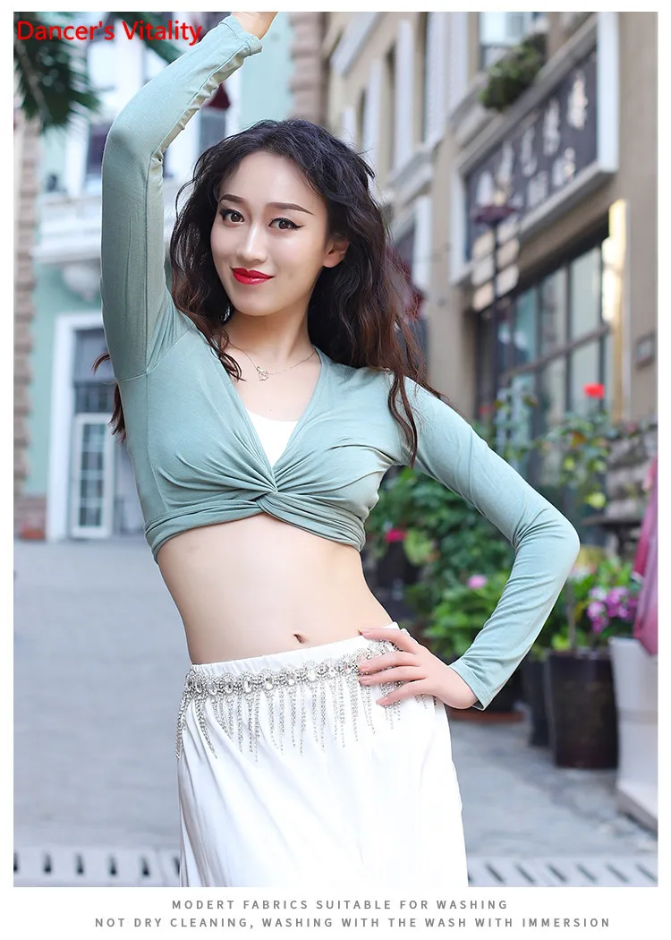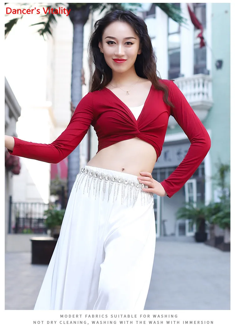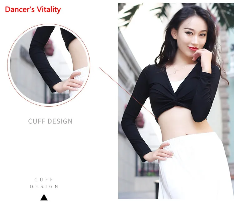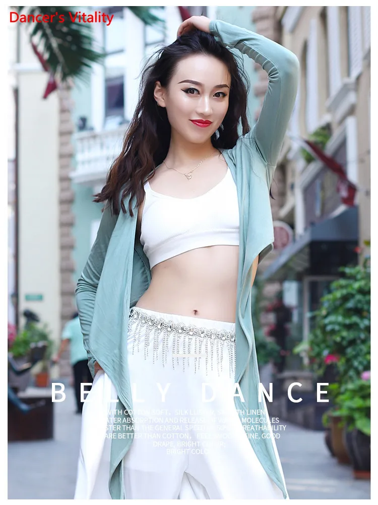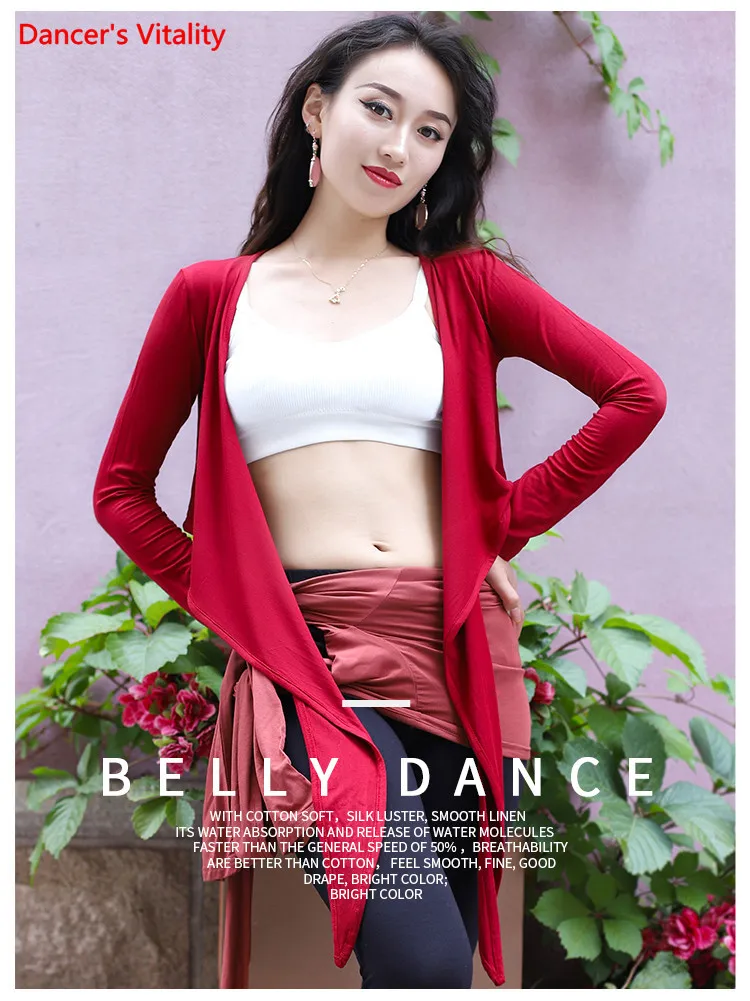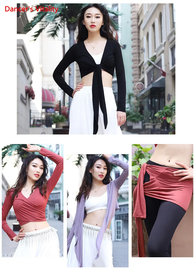 Женский топ для танца живота, элегантный кардиган с длинным рукавом для взрослых, тренировочная одежда, женская рубашка, набедренный шарф, одежда двойного назначения для выступлений