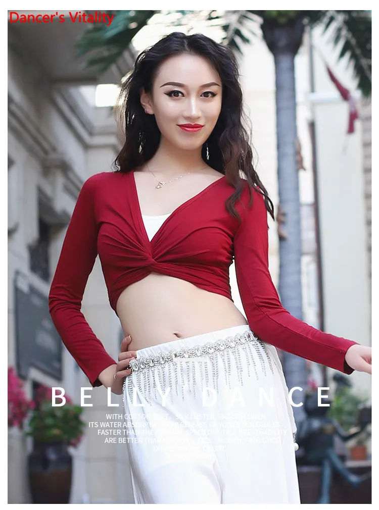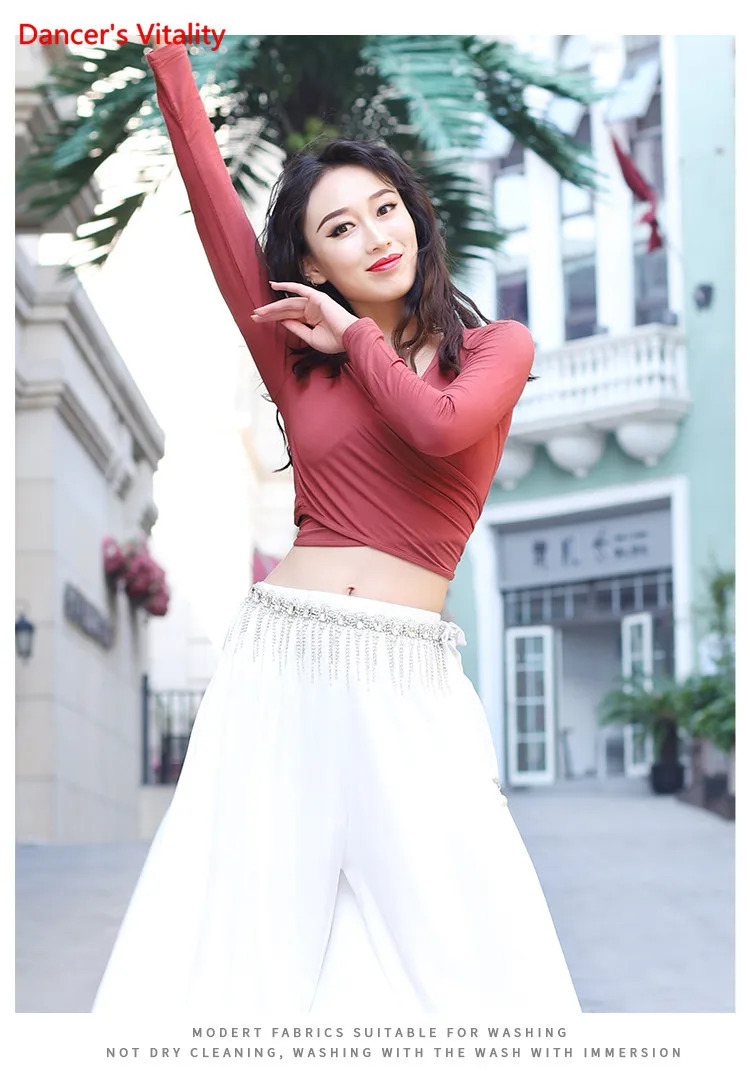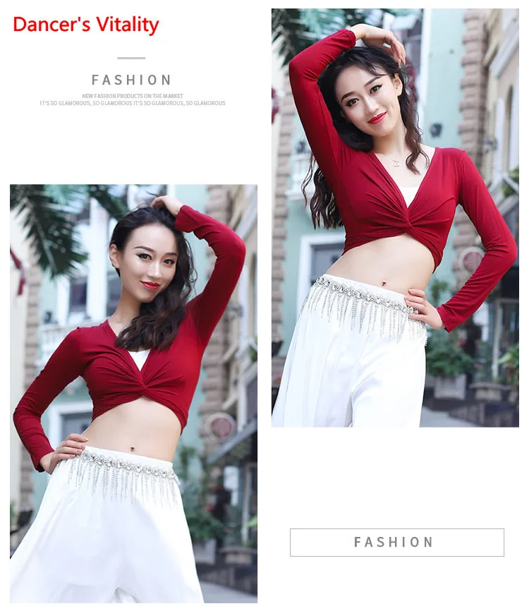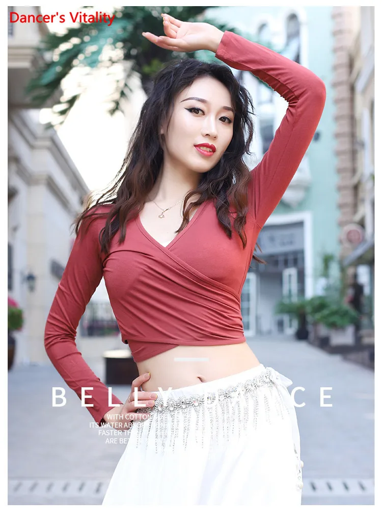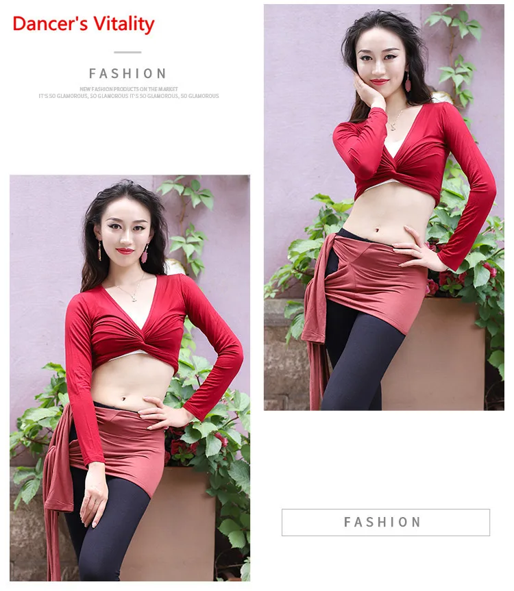 Женский топ для танца живота, элегантный кардиган с длинным рукавом для взрослых, тренировочная одежда, женская рубашка, набедренный шарф, одежда двойного назначения для выступлений