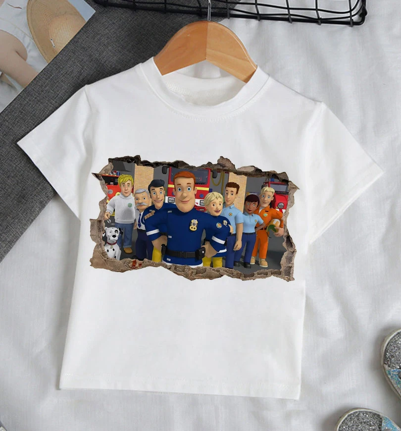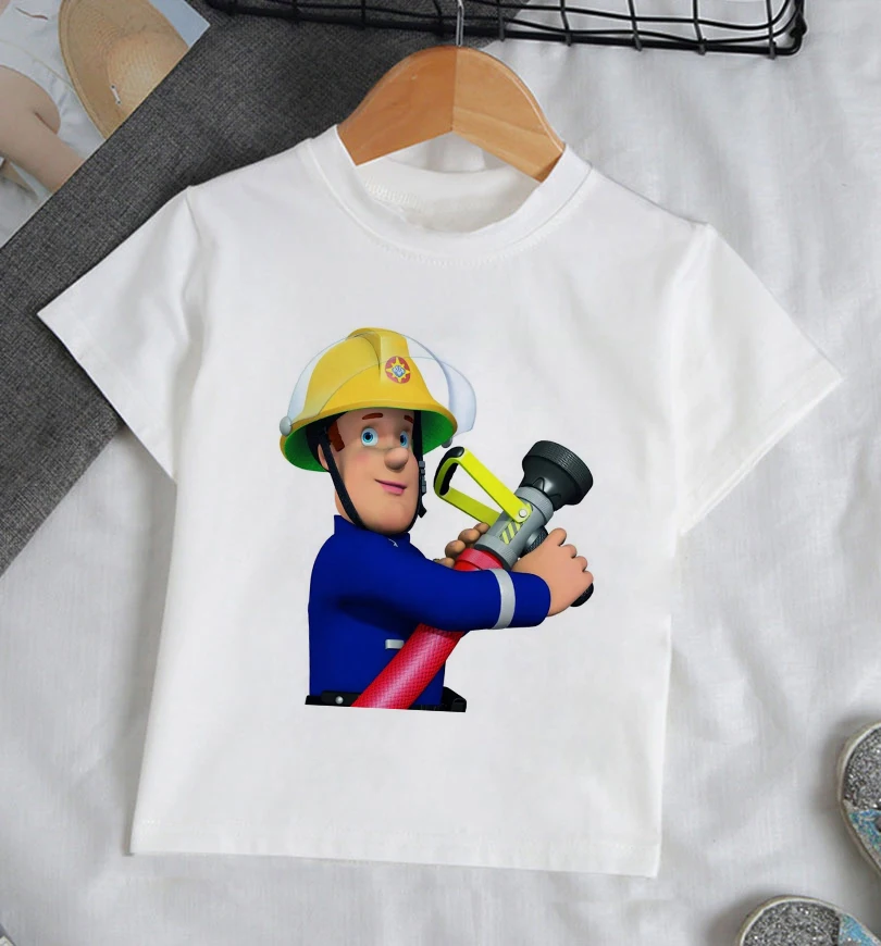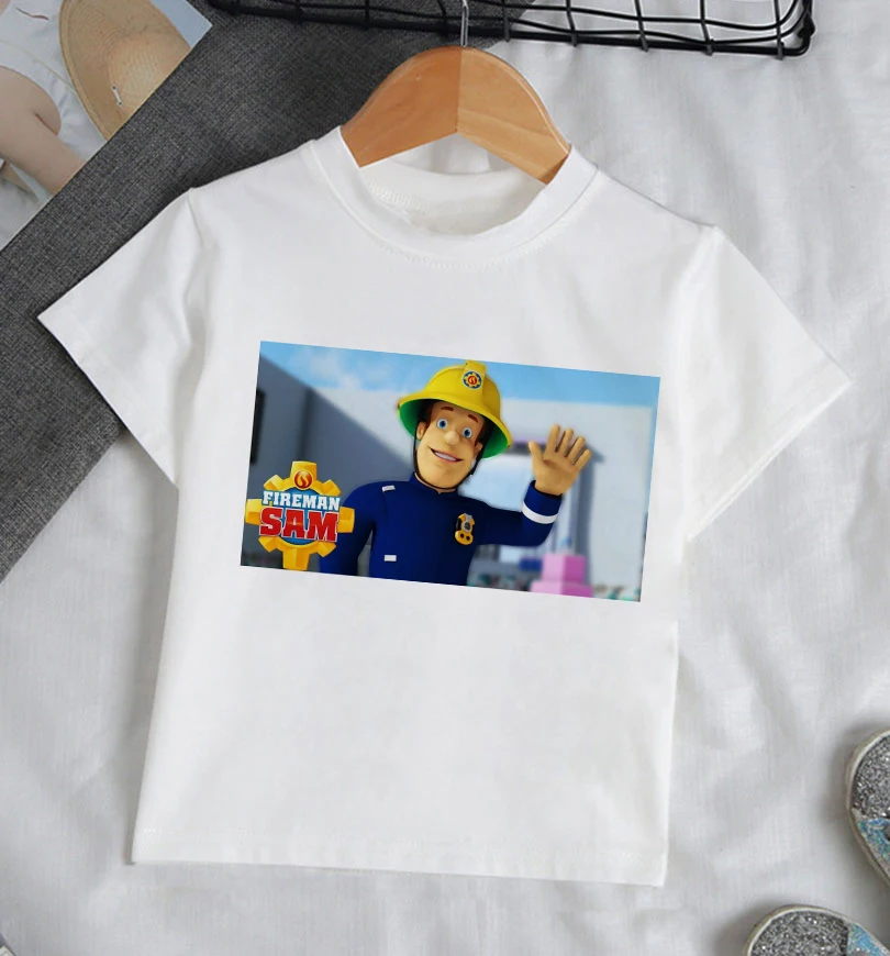 Новая детская футболка с забавным принтом пожарного Сэма летние топы для маленьких девочек и мальчиков, отличная Повседневная футболка в стиле Харадзюку с круглым вырезом