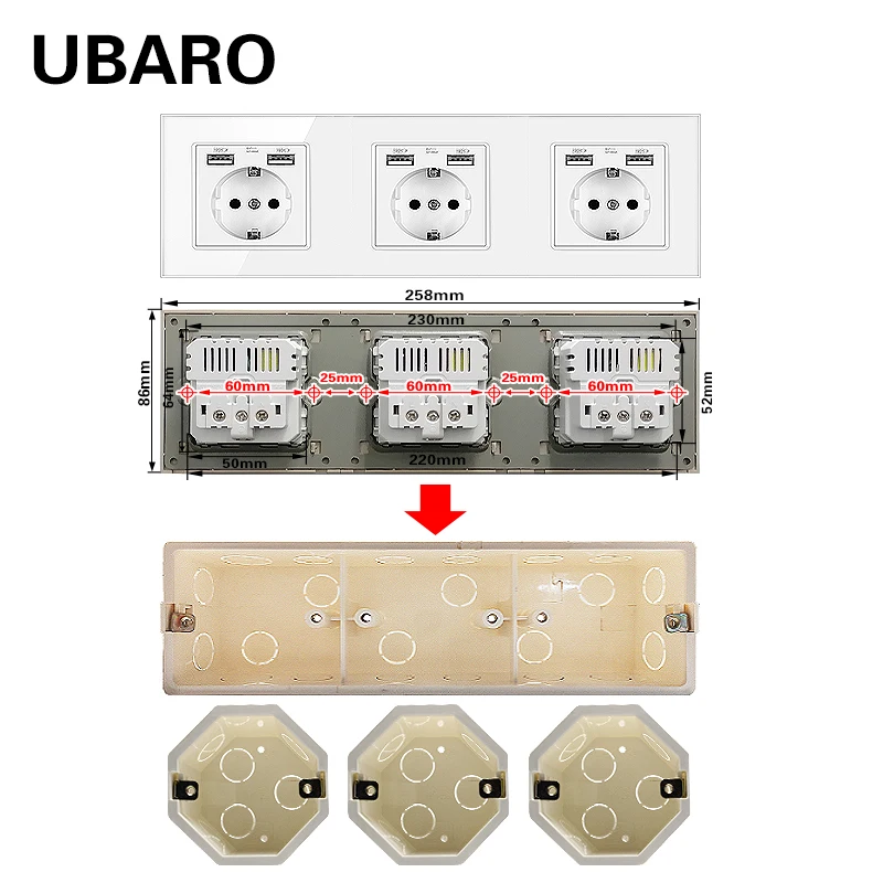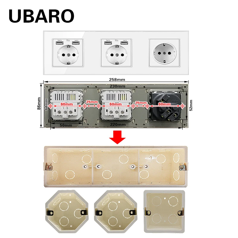 Скрытая Нижняя розетка 255*80*50 мм, пластиковый материал, белая поверхность, розетка и настенный светильник, сенсорный переключатель, распределительная коробка