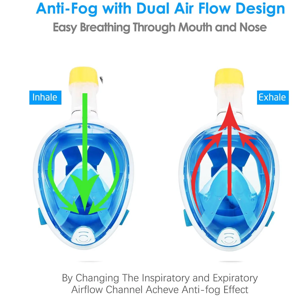 1,180 ° полный дизайн лица: Наша маска для снорклинга обеспечивает панорамный вид на 180 °, делает его легче, чем когда-либо, дышать комфортно через рот или нос во время подводного плавания. Вы увидите больше рыбы и подводного мира, чем когда-либо раньше! Со съемным креплением для камеры вы можете легко подключить камеру и запечатлеть Движение вокруг вас в режиме hands-free высокой четкости.