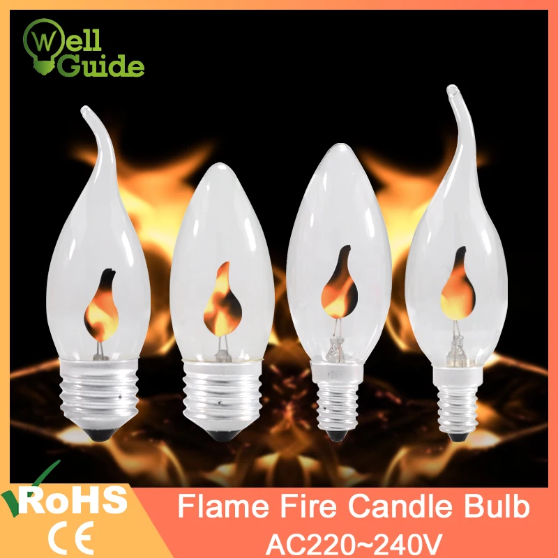 Светодиодная лампа E14 E27 Edison, мерцающее пламя, Светодиодная свеча, огсветильник, винтажный 3 Вт, 240 В переменного тока, в, хвост, Ретро Декор, энергосберегающая лампа