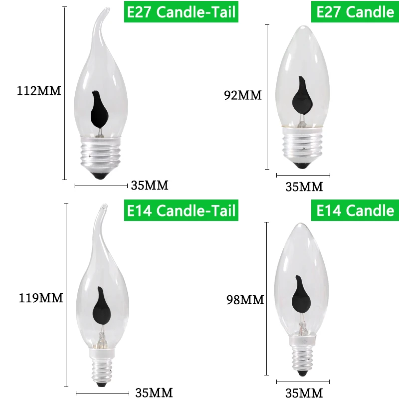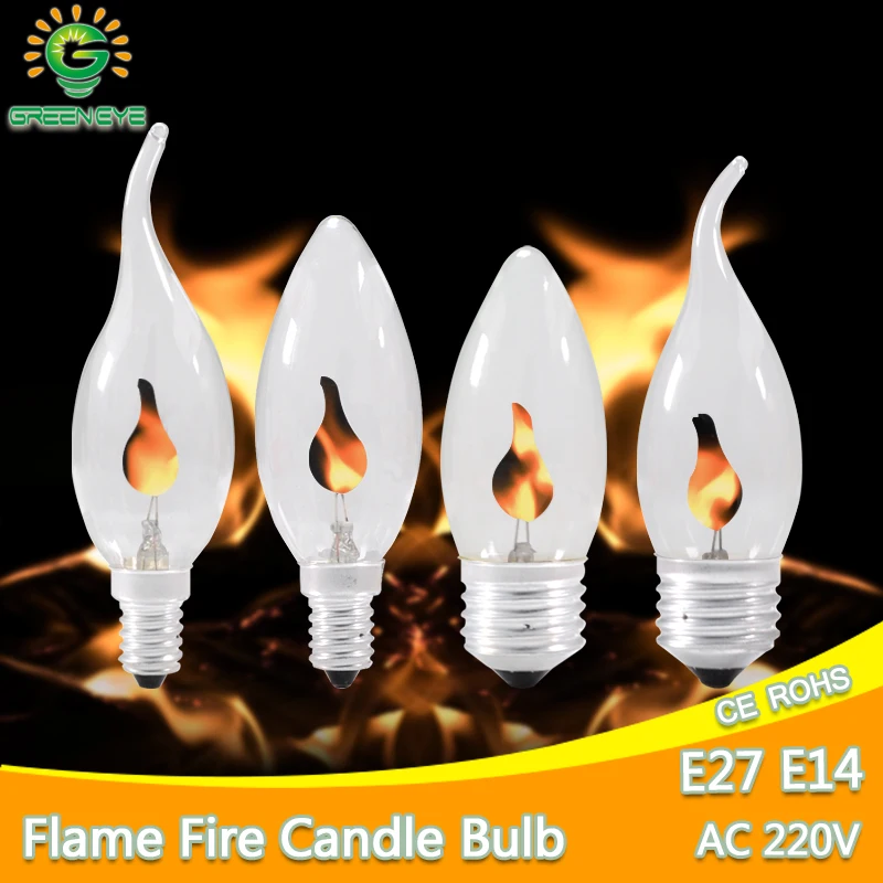 Светодиодная лампа E14 E27 Edison led лампачки со пламени светодиодные лампы в форме свечи светильник огонь светильник ing Винтаж 3 Вт AC220V 240V Хвост Ретро Декор энергосберегающая лампа