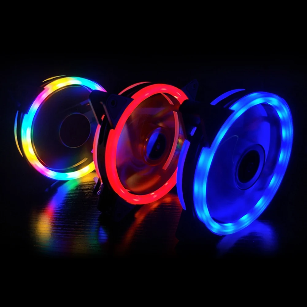 Универсальный вентилятор 120 мм с двойной RGB подсветильник кой, бесшумный кулер для корпуса компьютера, 3pin4pin