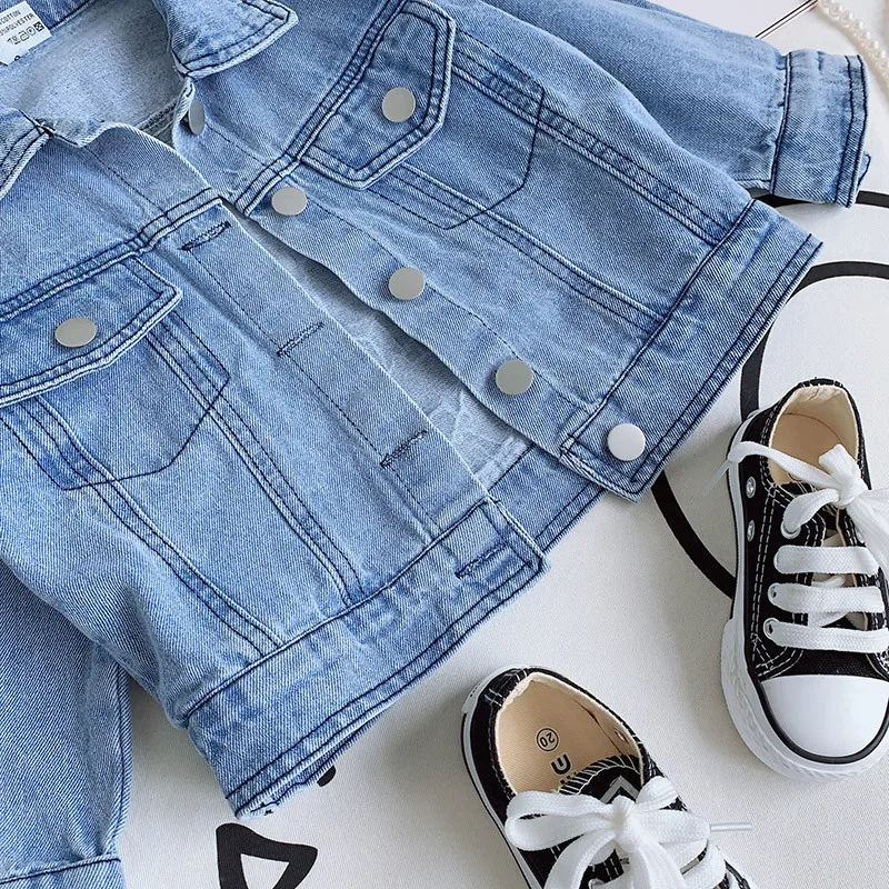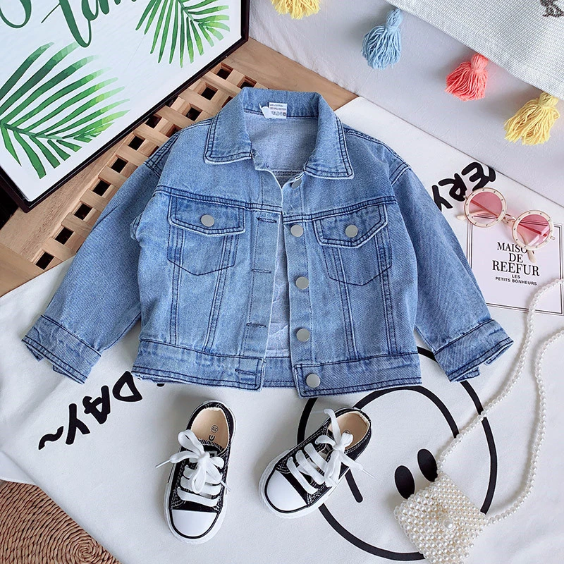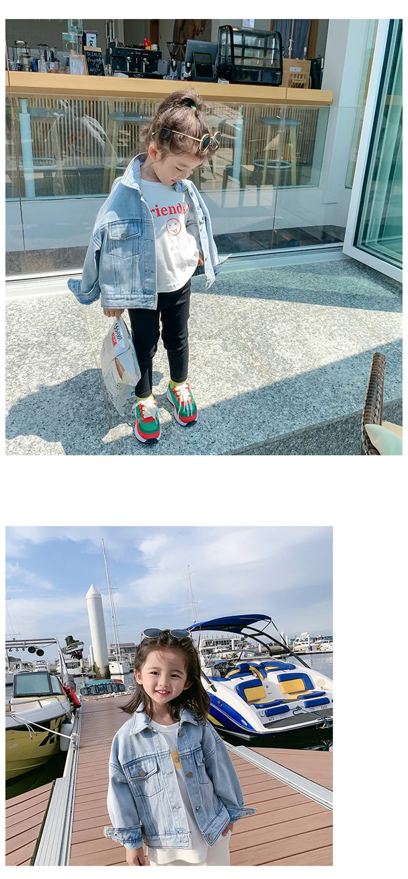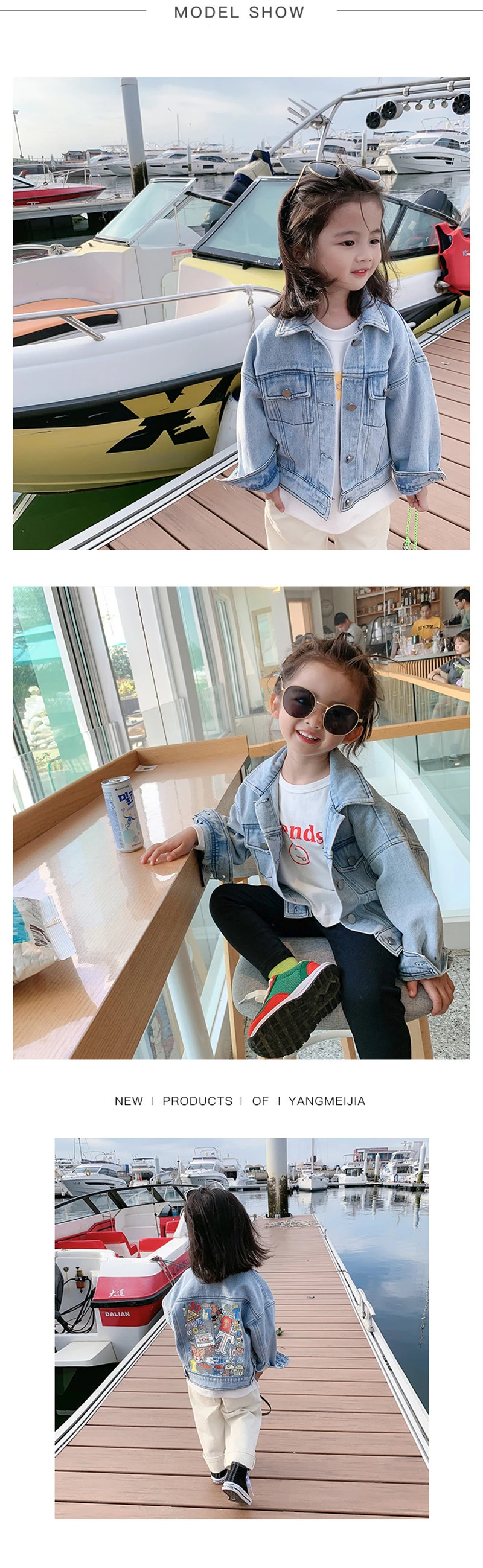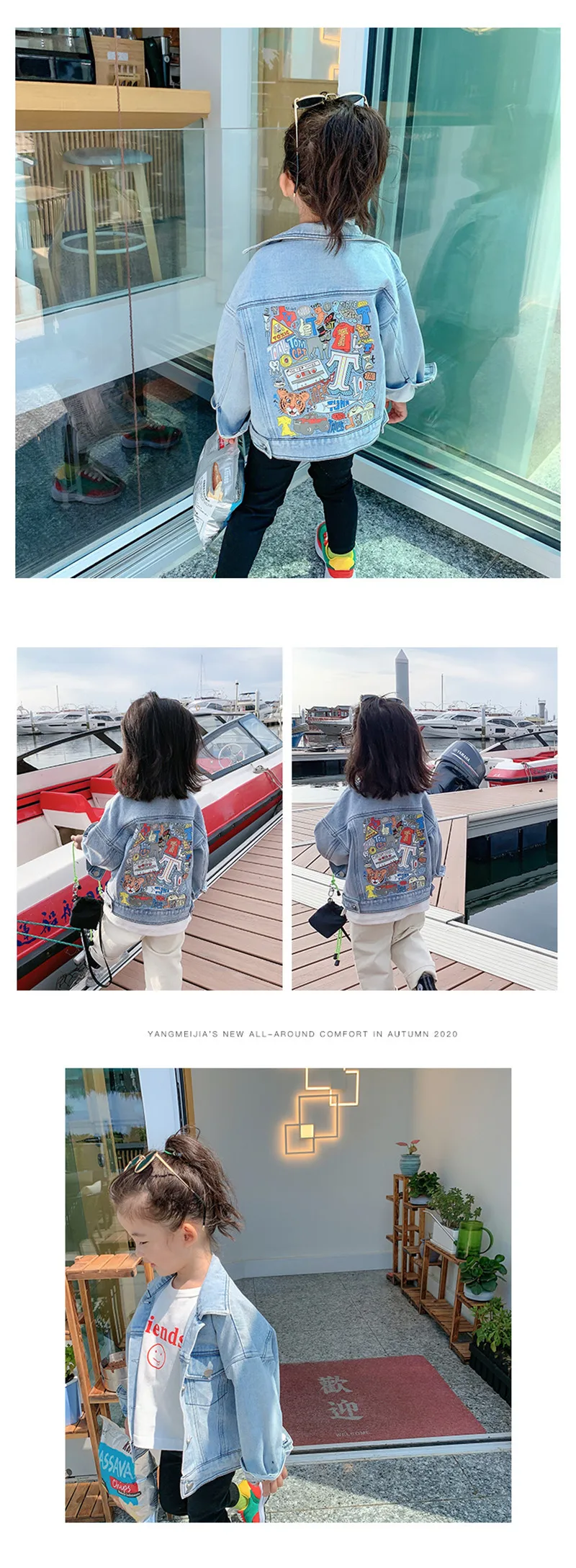 Модная синяя джинсовая куртка для маленьких девочек, осенняя одежда для детей, весеннее пальто с мультяшным принтом для мальчиков, верхняя одежда, 2022