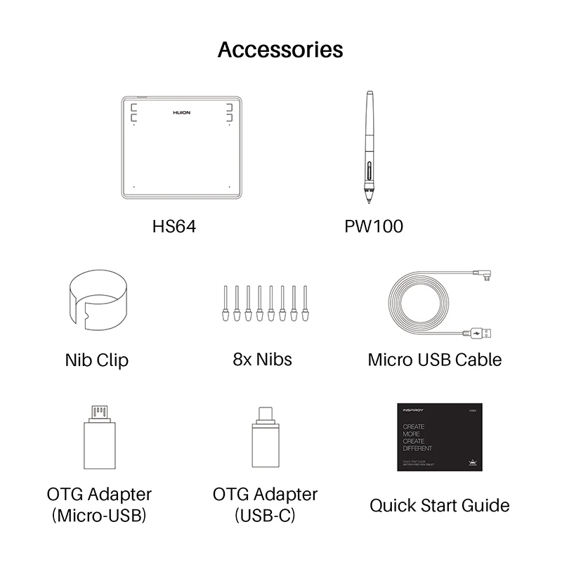 Графический планшет Huion HS64, с безбатарейным стилусом, цифровой планшет для рисования с кнопками, совместимый с Android, Windows, MacOS