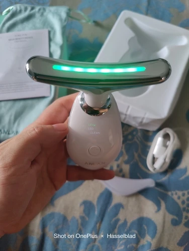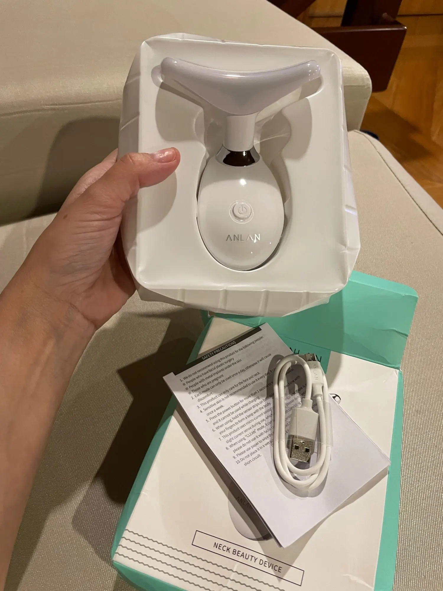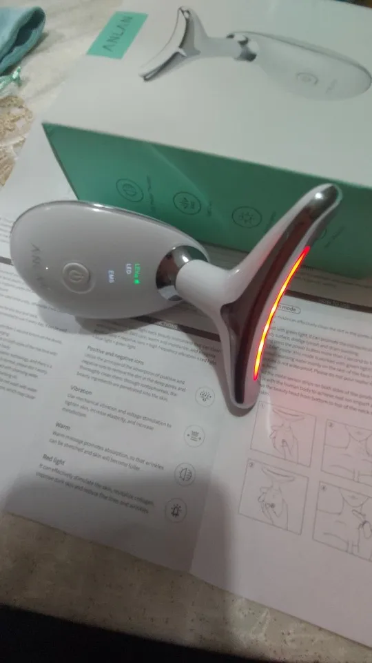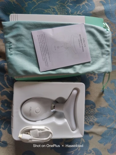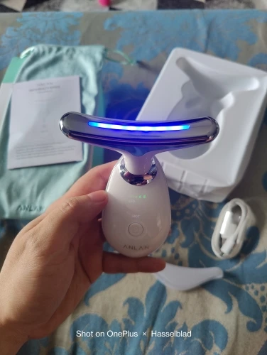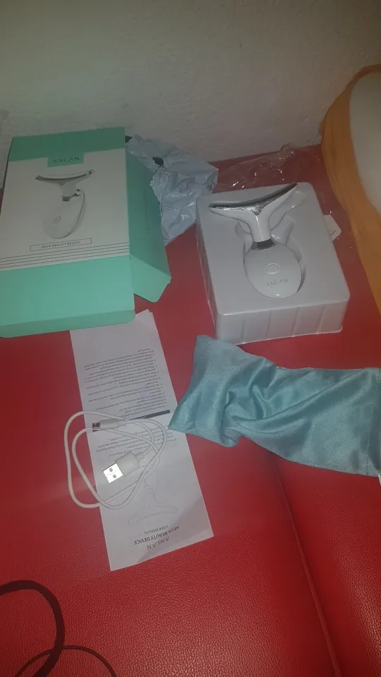 Entrega rapidísima, 1 día. Aparato muy cómodo de pasar. Sólo lo he probado una vez, no he visto resultado, pero es un buen complemento para el Anlan 5 por la capacidad de abarcar cuello, papada y óvalo. Masaje con vibración agradable. Excelente servicio.