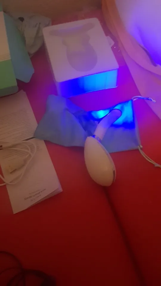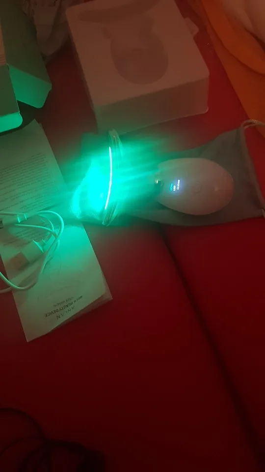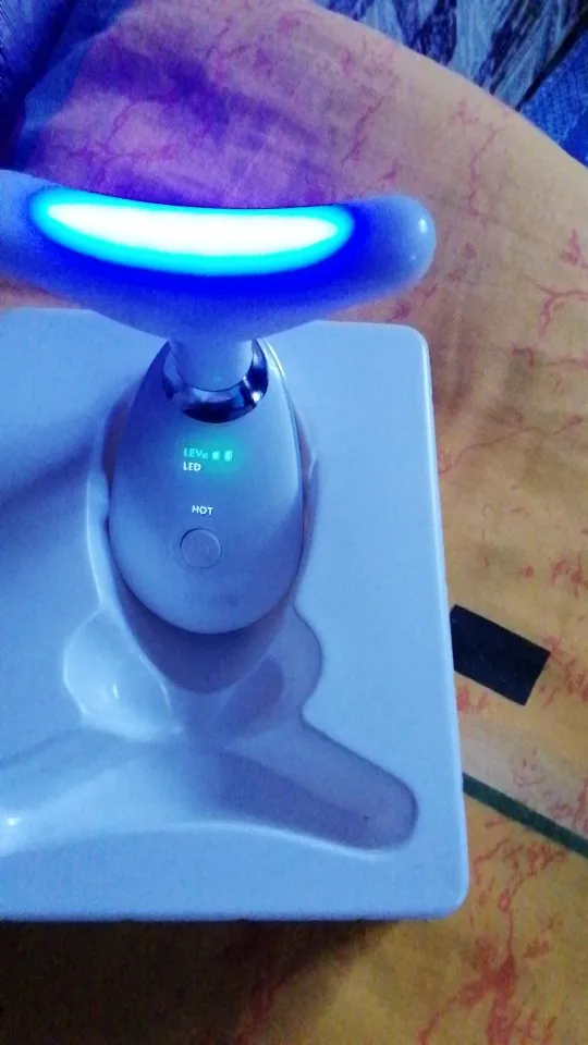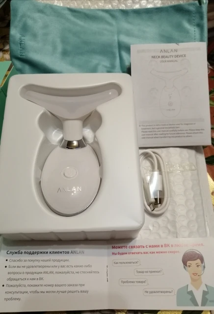 Доставка быстрая. Аппарат работает. Но красный свет не горячий, комнатной температуры, голубой - чуть тёплый. Про эффект пока ничего не скажу, пользовалась 2 раза. Спасибо продавцу. Инструкция на английском языке