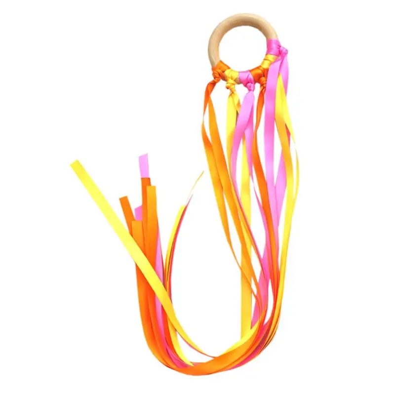 Радужное кольцо из натурального дерева с лентой, игрушки Вальдорф, ...