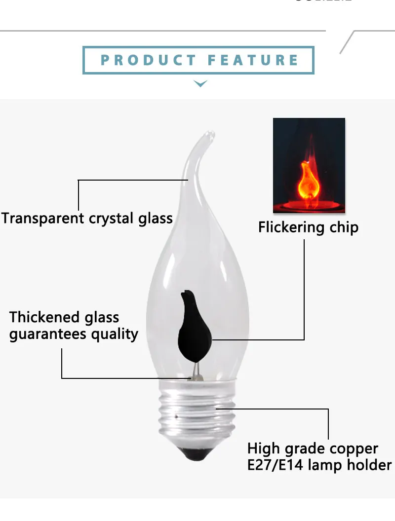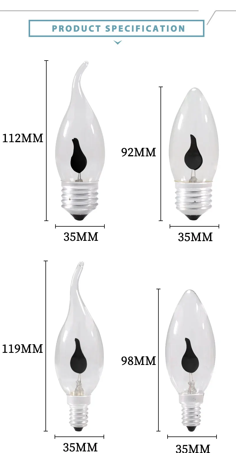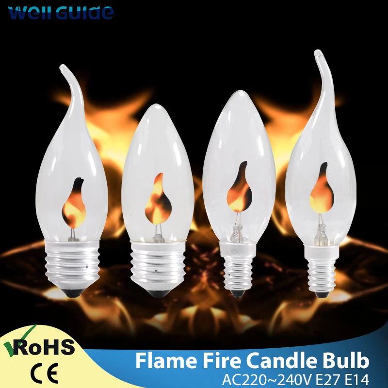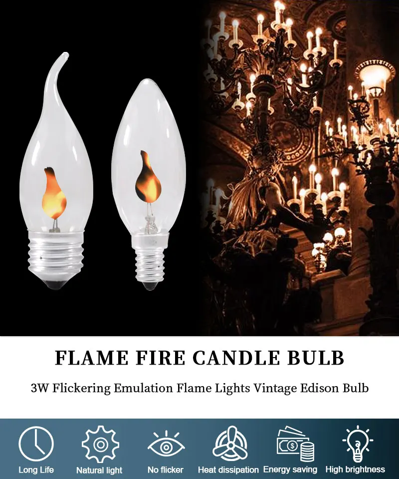 Светодиодная лампа E14 E27 Edison led лампачки со пламени светодиодные лампы в форме свечи светильник огонь светильник ing Винтаж 3 Вт AC220V 240V Хвост Ретро Декор энергосберегающая лампа