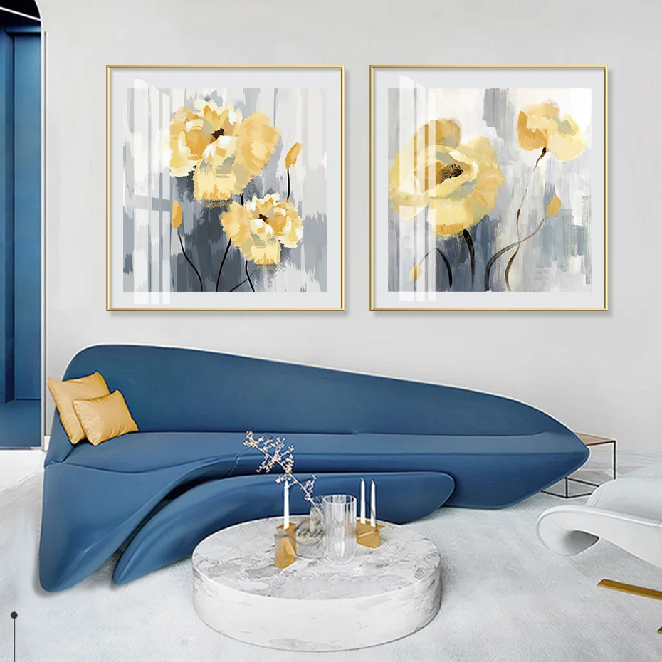 Золотая нарисованная картина, холст, минималистская настенная живоп...