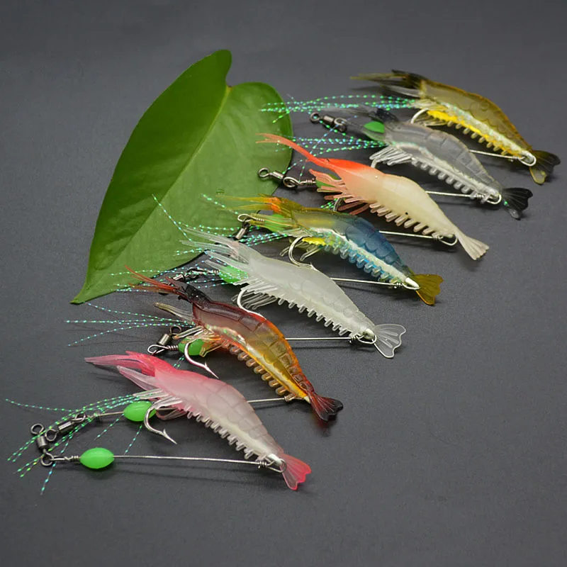 7 шт.лот, силиконовые креветки, рыболовные приманки, светящиеся искусственные приманки с крючками, вертлюги 8 см, 5g, разноцветные снасти для ловли карпа X806