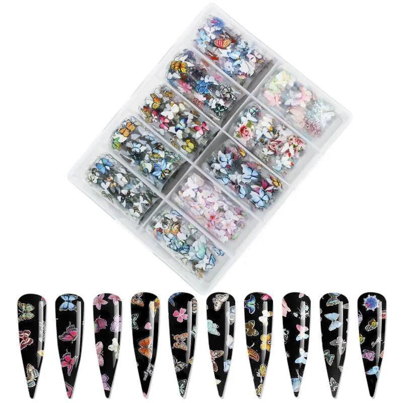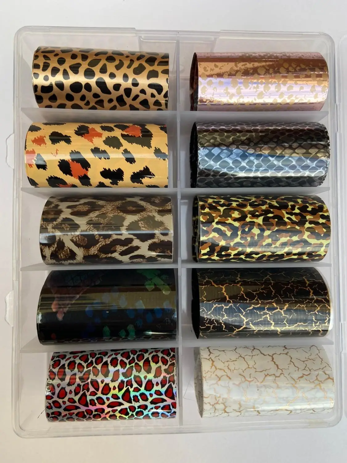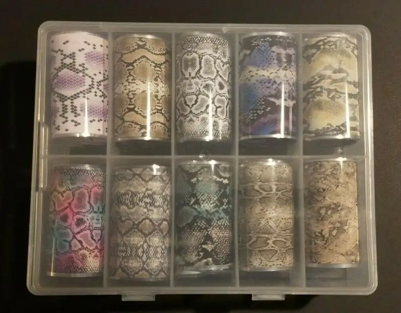 1 коробка, 10 цветов, Кобра, змеиная Голографическая фольга для переноса ногтей, наклейка с леопардовым принтом змеи, фольга 11 стилей (фольга для ногтей)