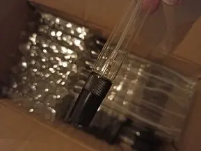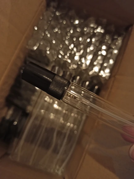 товар пришел. с виду флакончики приличные. правда думала что придут все таки из матового стекла. но видимо сама ошиблась при покупке. запакован прям очень ОТЛИЧНО. потеря все таки была минус один флакон (разбился) шло не так уж долго.