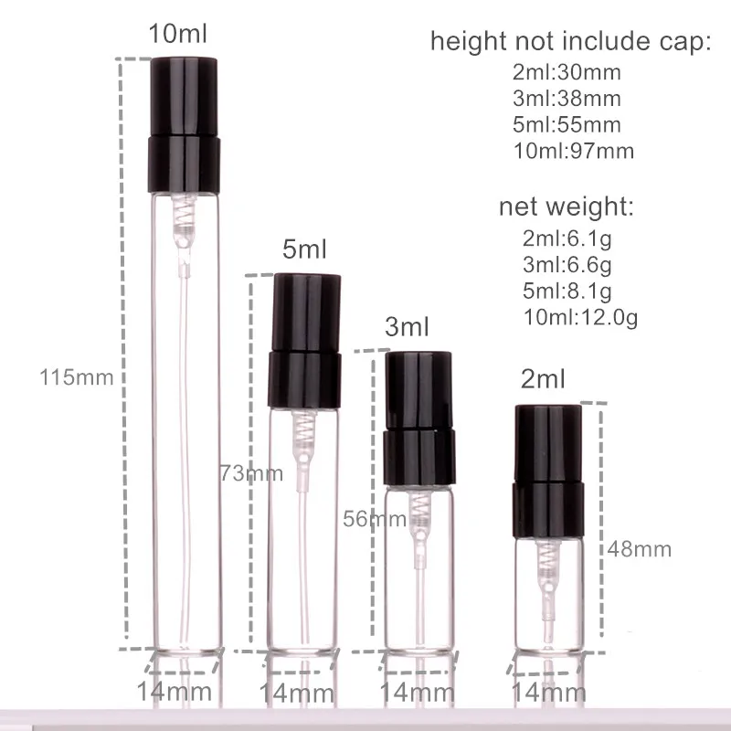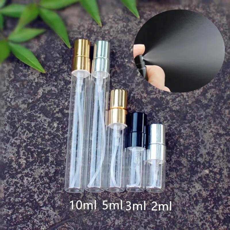50 шт.лот 2 мл 3 мл 5 мл 10 мл флакон с распылителем для духов дорожные тонкие стеклянные пустые косметические флаконы с алюминиевым насосом