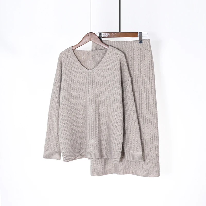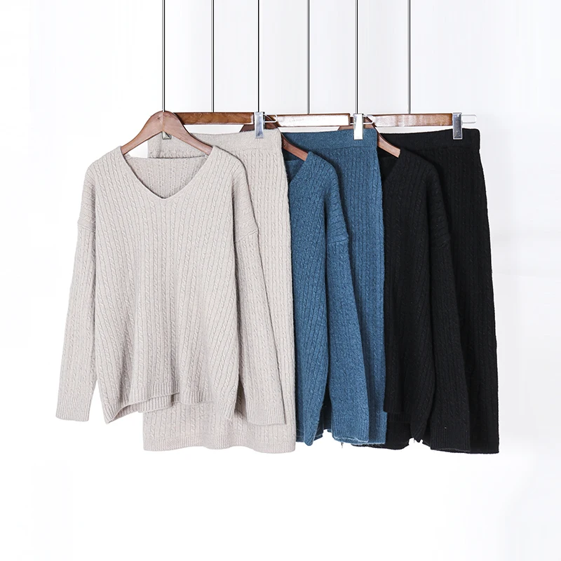 Женский трикотажный костюм Toppies, осенний комплект из двух предметов, свитер с V-образным вырезом и Юбка-миди с эластичной талией, 2020