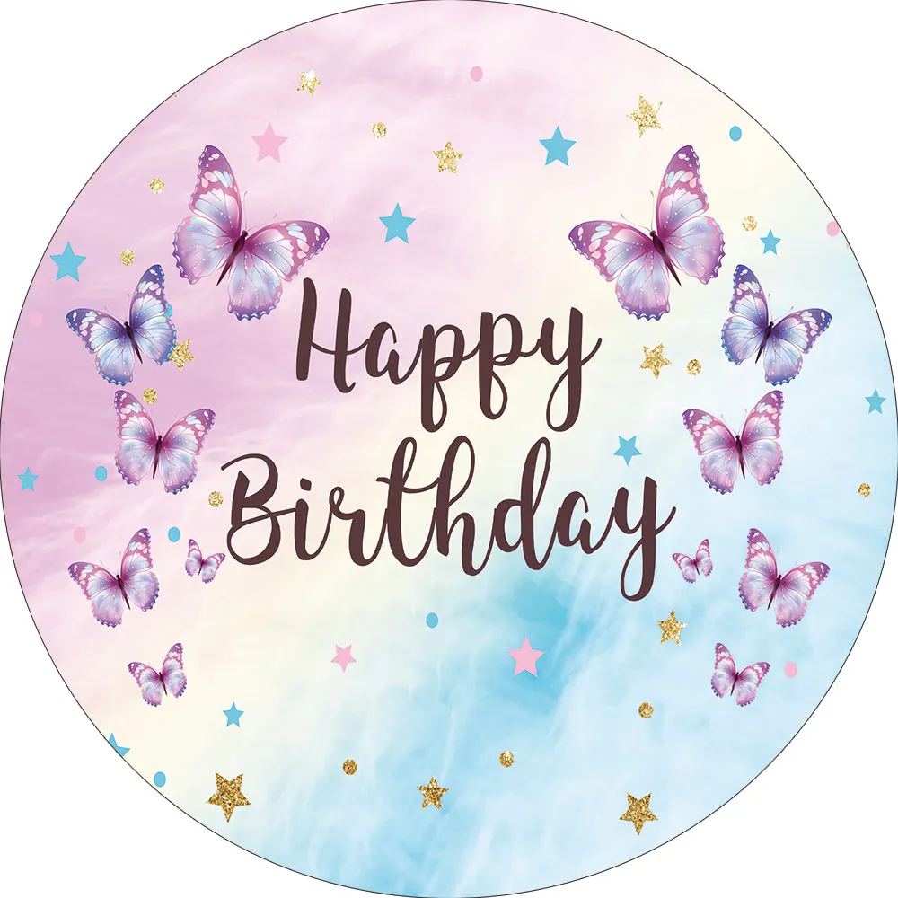 Фоны Allenjoy с бабочкой круглый фон для фотосъемки с изображением пастельных резиновые сапоги с рисунком в горошек, со звездами и Baby Shower фотозонт фон с днем рождения праздничные шторы
