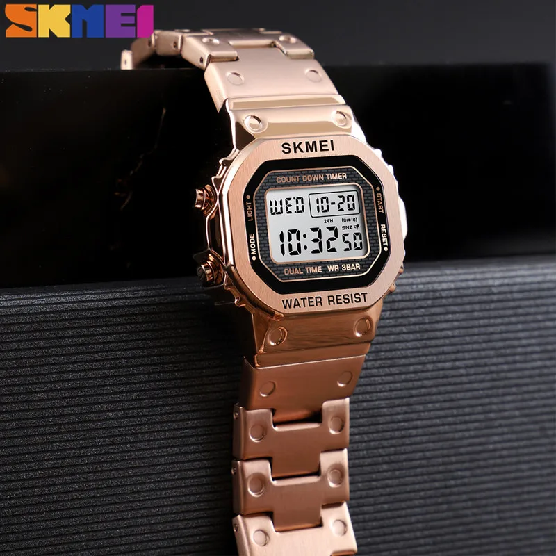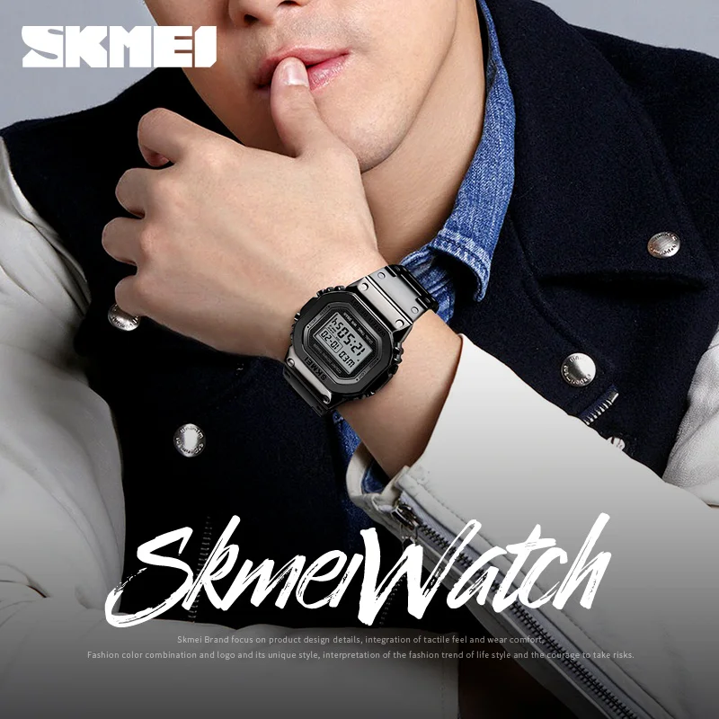 Часы наручные SKMEI мужскиеженские с календарем, цифровые светящиеся водонепроницаемые с секундомером и будильником, с полным календарем, 1433