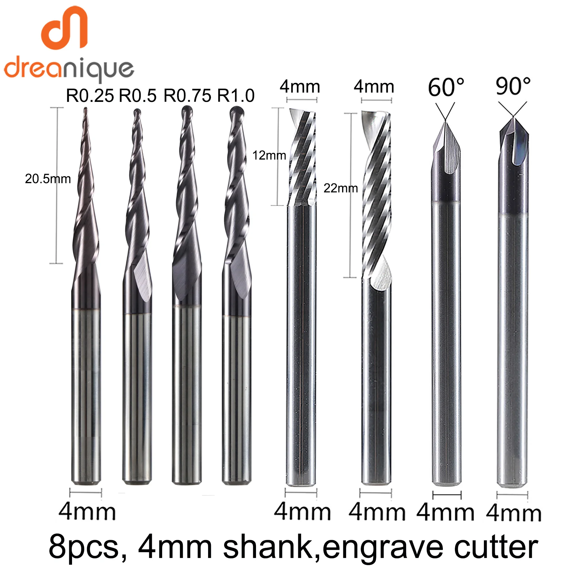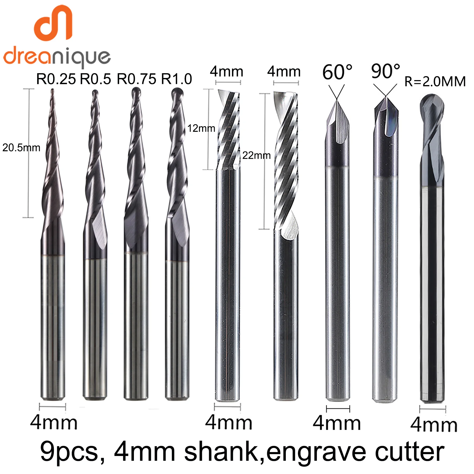CNC Твердые карбидные наконечники для гравировки фрезерный станок набор по дереву 4 мм хвостовик фрезы для резьбы по дереву инструменты