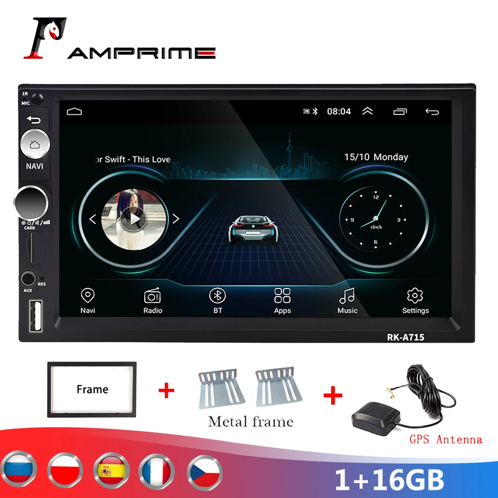 Автомагнитола AMPrime, мультимедийный плеер на Android, с 7 "экраном, bluetooth, Aux, FM, USB, типоразмер 2 din