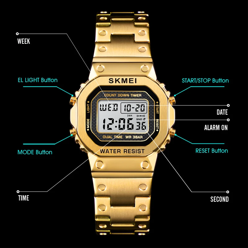 Часы женские электронные с хронографом и будильником, водонепроницаемые, 1433
