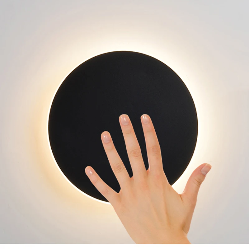 Круглая светодиодная настенная лампа, современный сенсорный выключатель, RGB Освещение для стены, черный, белый настенное бра, светильник освещение