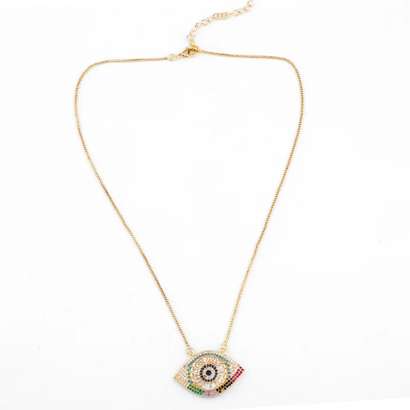 Золотое ожерелье с греческим глазом для женщин, циркониевое ожерелье с кулоном с изображением сглаза, CZ Радуга, ювелирные изделия, ошейник, оптовая продажа