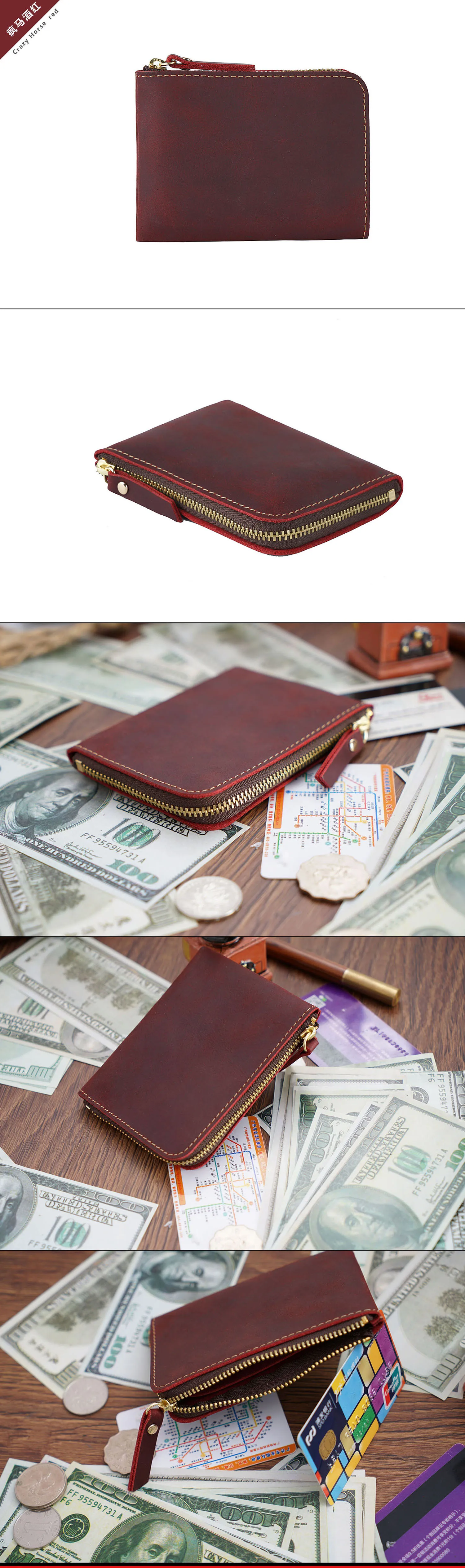 Мужской бумажник ручной работы из натуральной кожи, короткий винтаж...