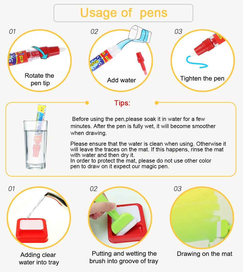 5 видов, коврик для рисования водой, магические ручки и штампы, набор для рисования, доска для рисования, Обучающие игрушки, подарок для детей