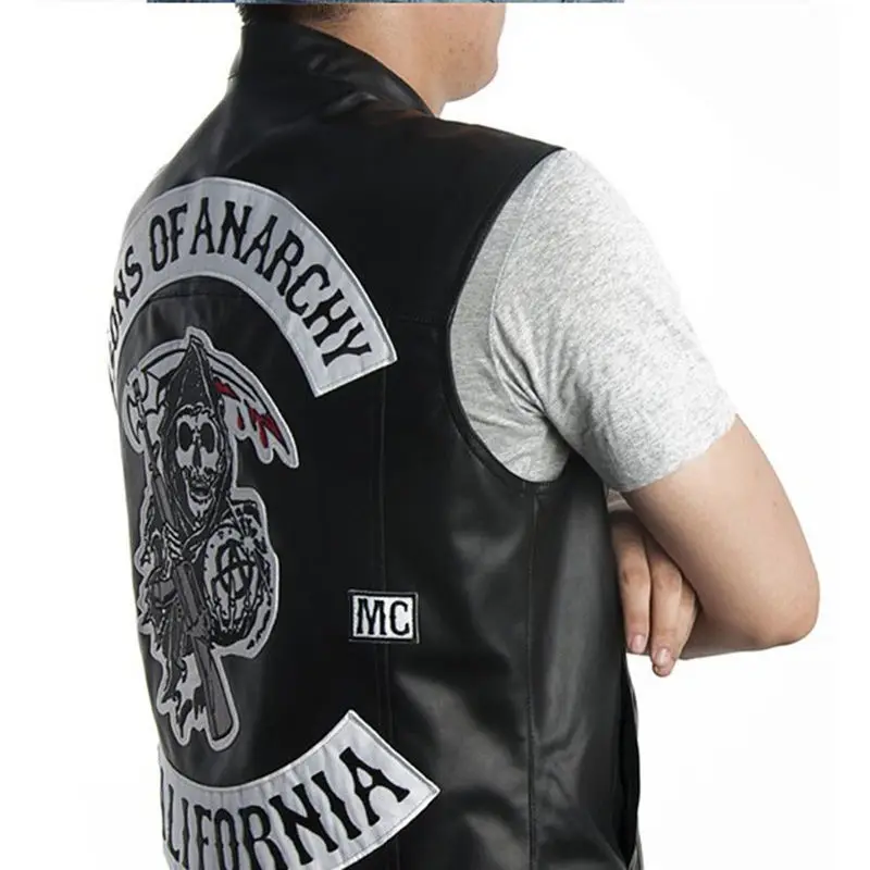 Новинка 2020/Sons Of Anarchy/кожаный панк-жилет с вышивкой для косплея, костюм черного цвета, мотоциклетный жилет без рукавов, мужская куртка