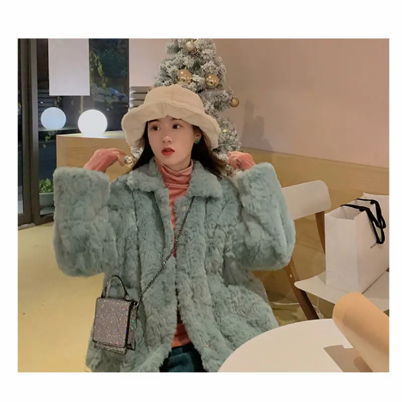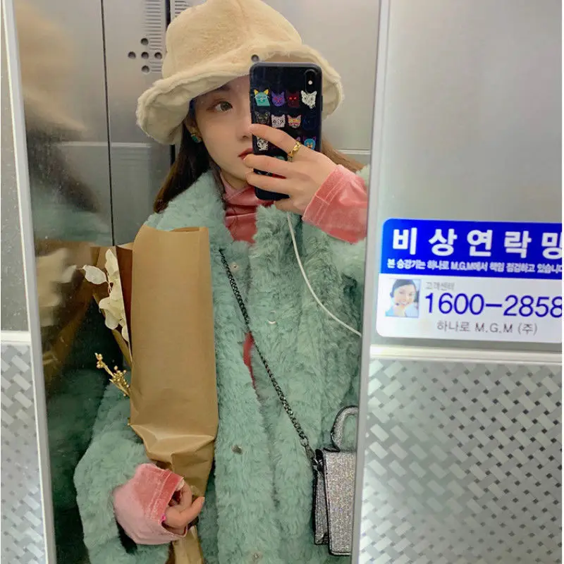 Модное корейское свободное кашемировое Женское пальто из ягненка и ...