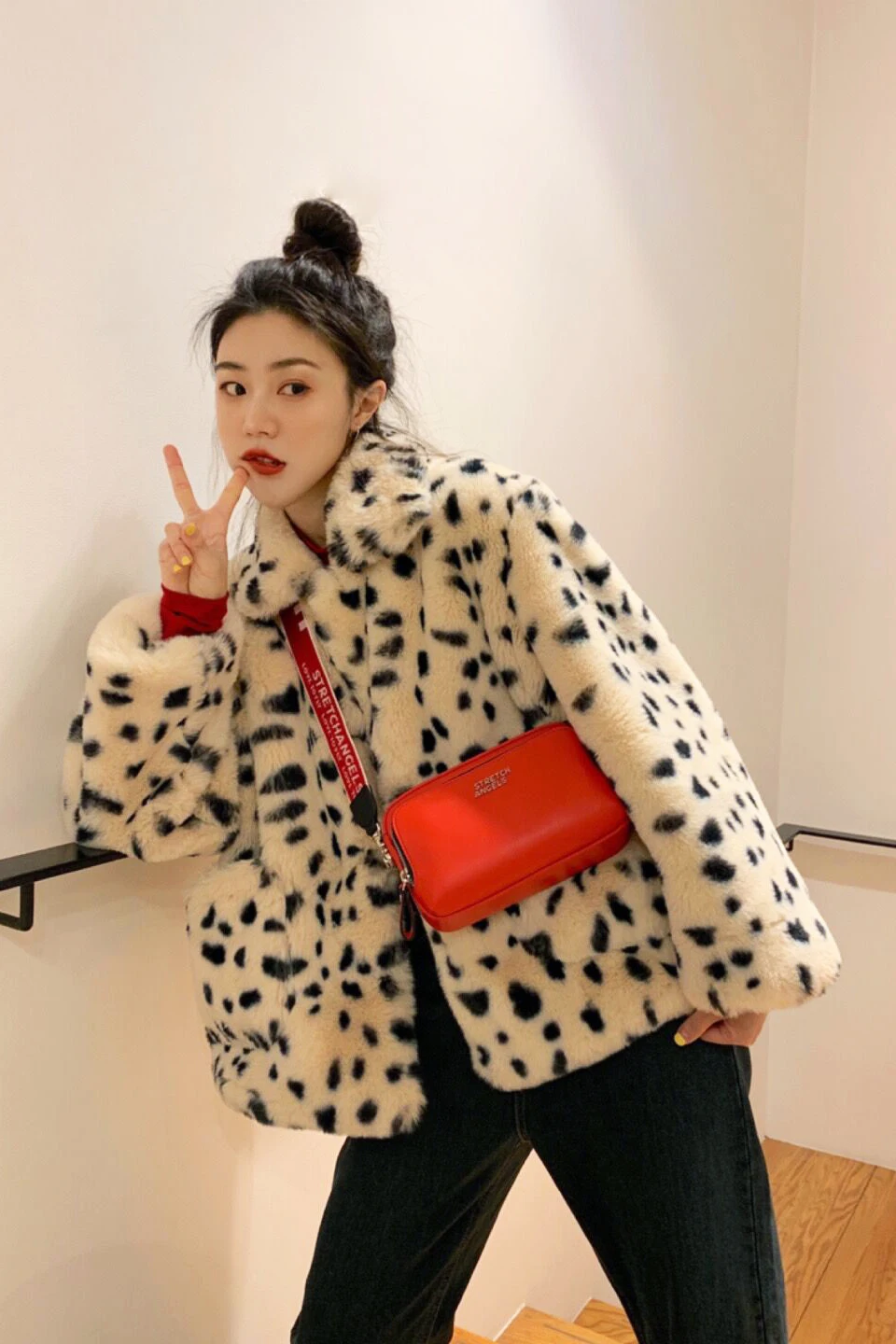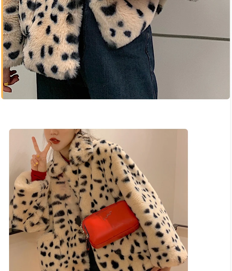 Корейская Свободная куртка из овечьей шерсти с леопардовым принтом, короткая Двусторонняя плюшевая Толстая куртка из искусственного меха, Женская куртка, леопардовое пальто, верхняя одежда