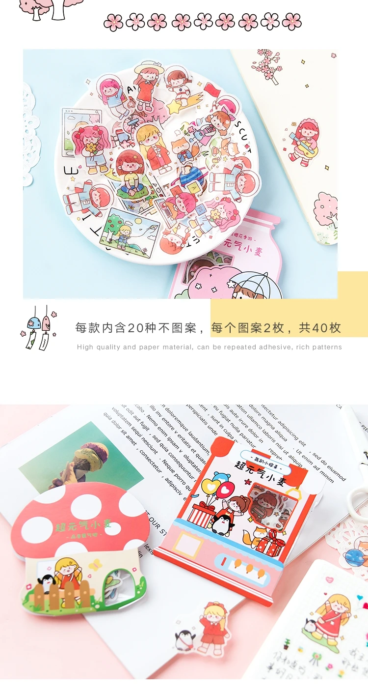 40 шт.упак. Kawaii для девочек мультфильм Стикеры s Diy рукоделие этикетки телефона дневник наклейка для украшения альбома Стикеры Канцелярские Товары для детей Подарки
