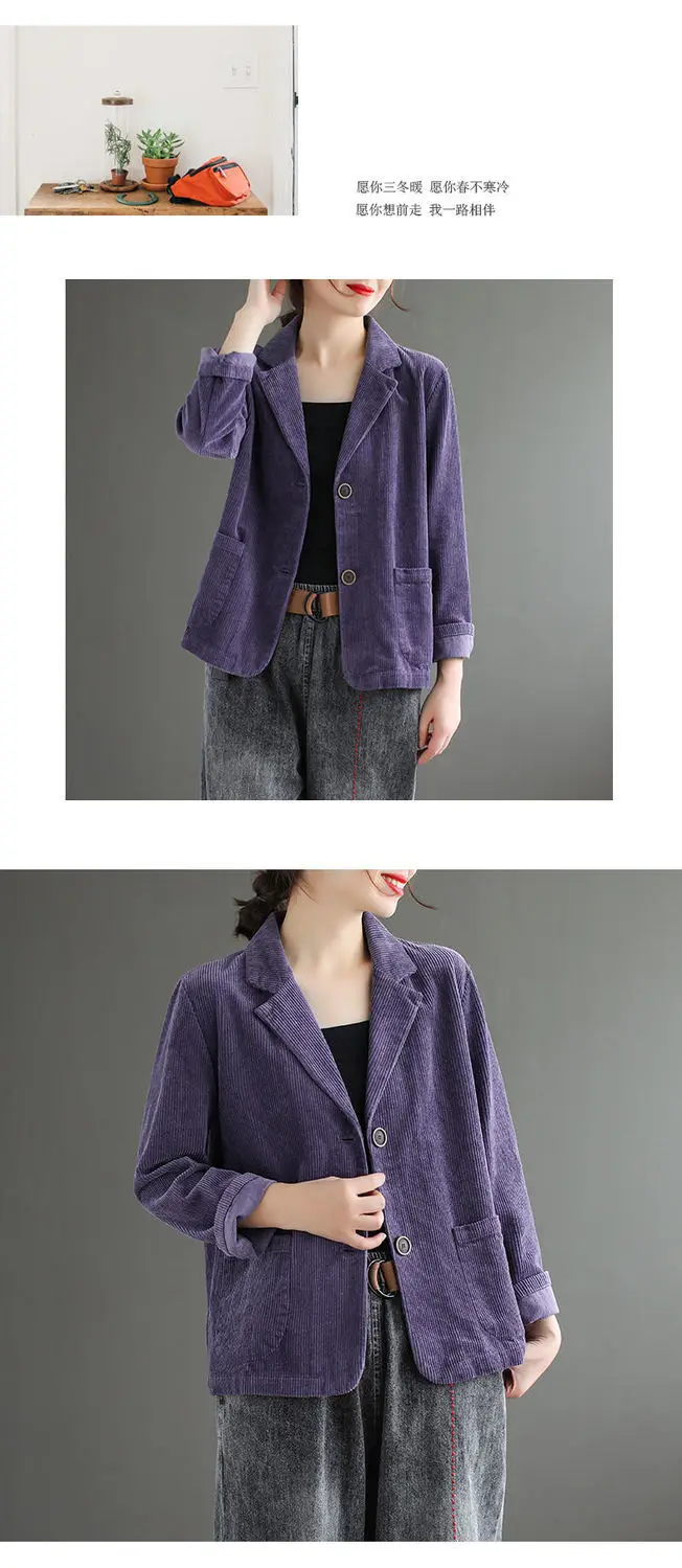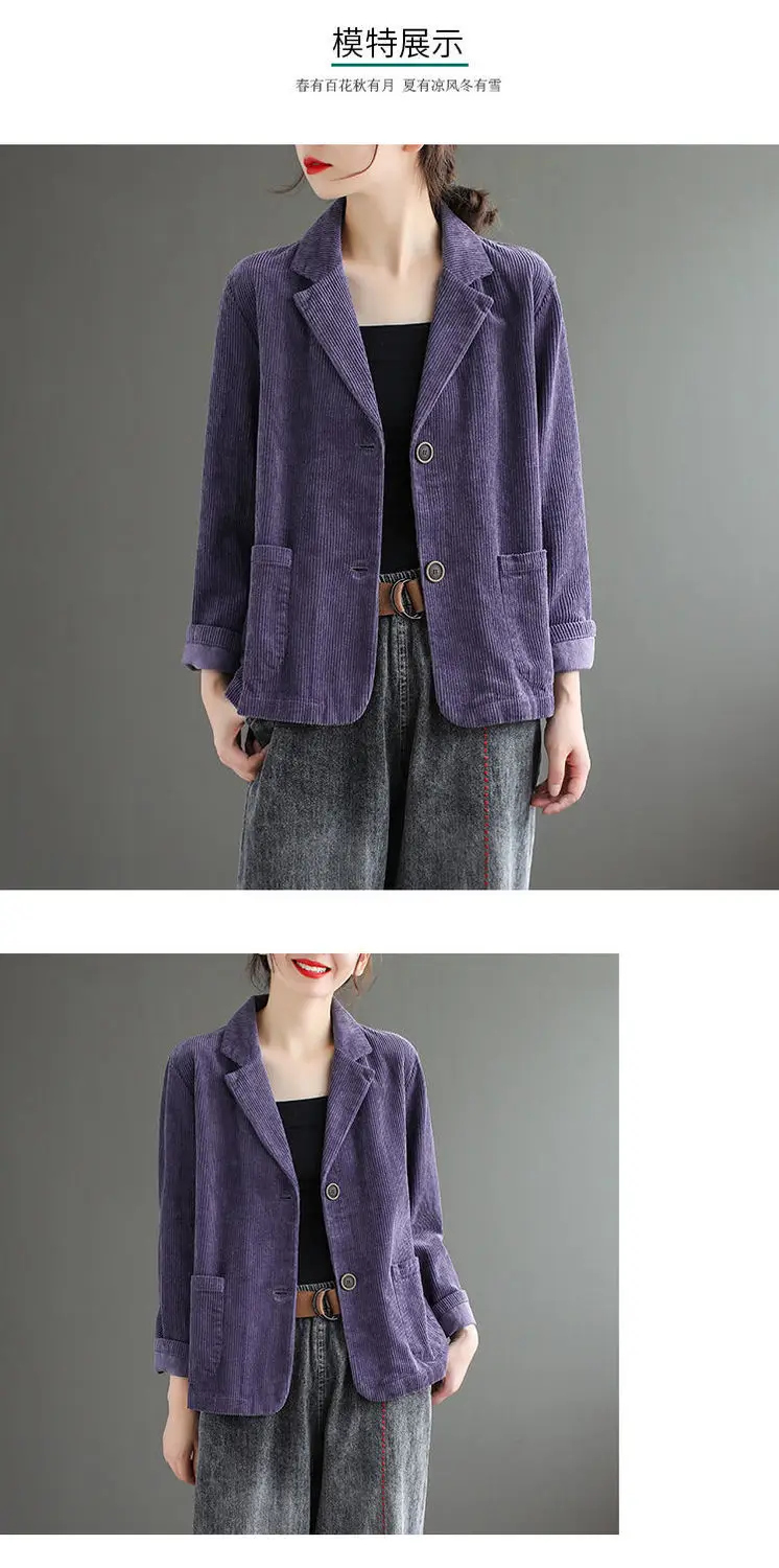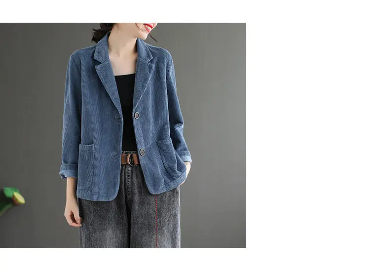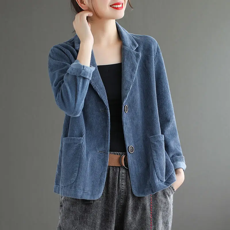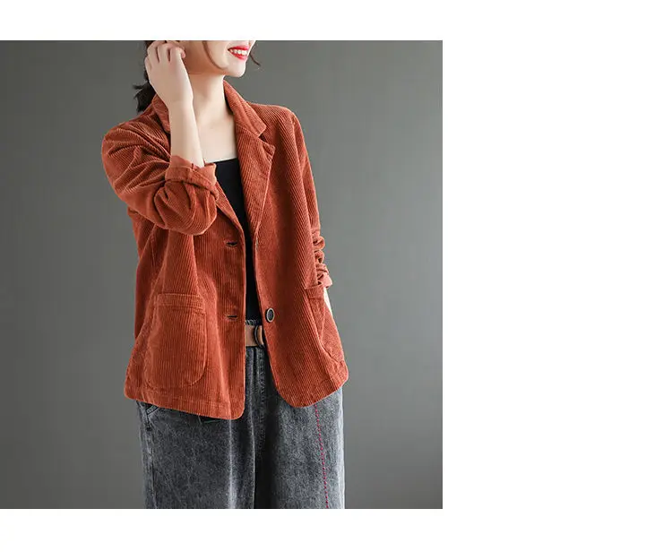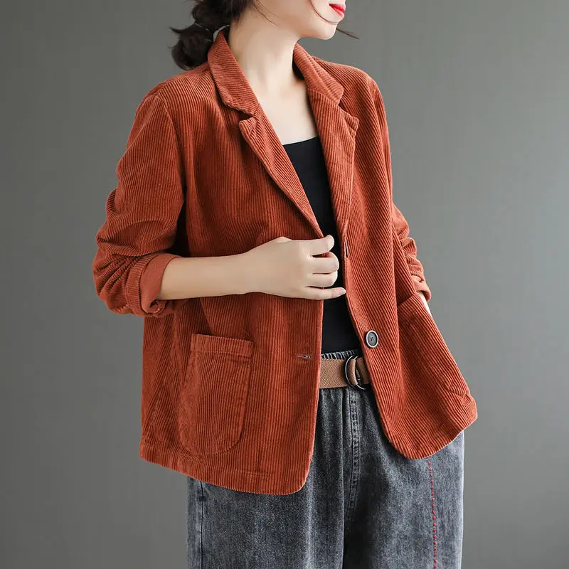Женский вельветовый пиджак, однобортный, с длинным рукавом
