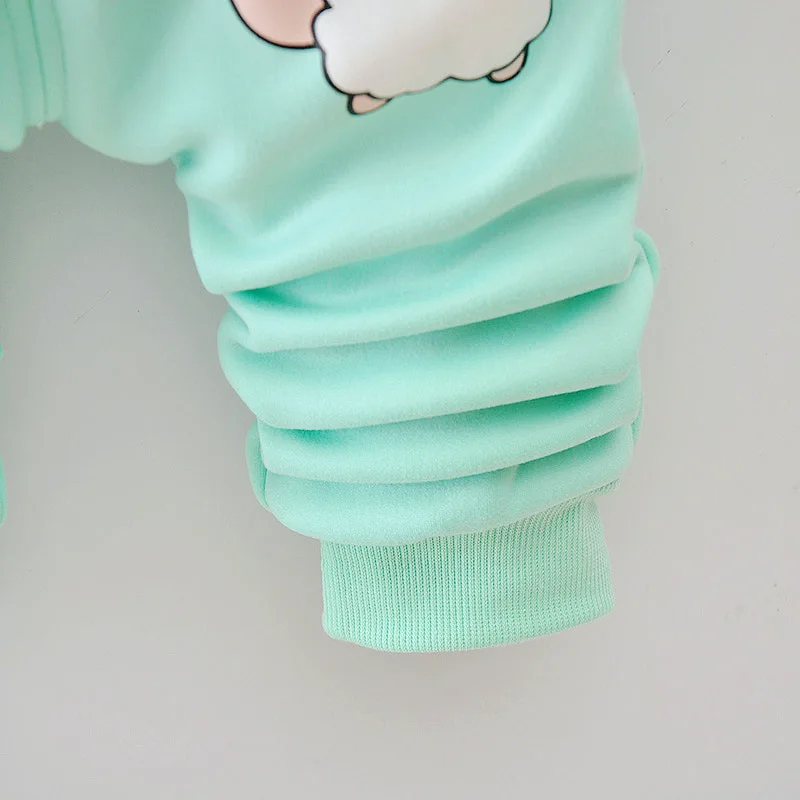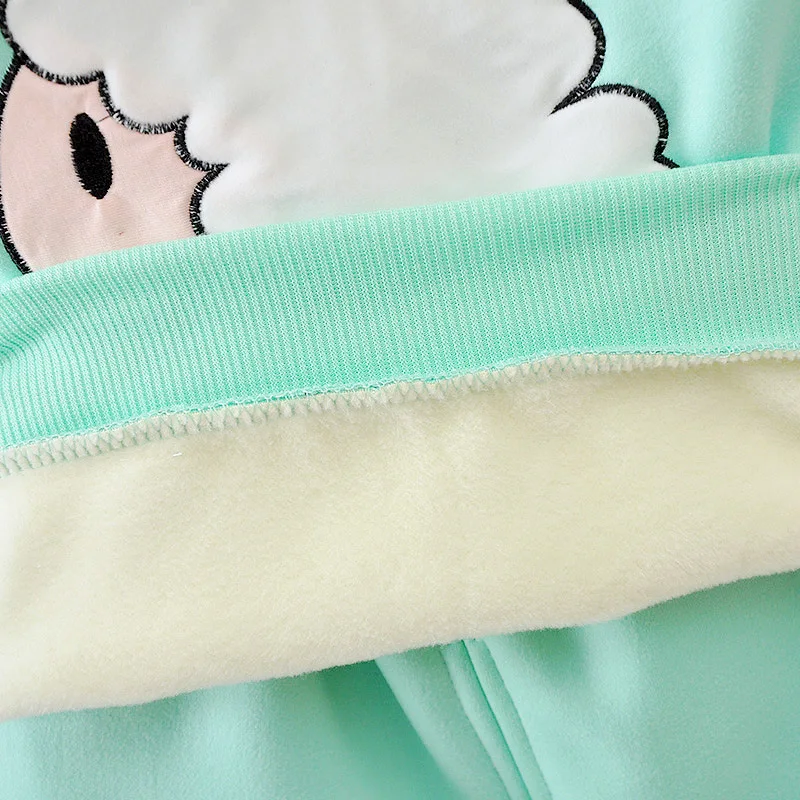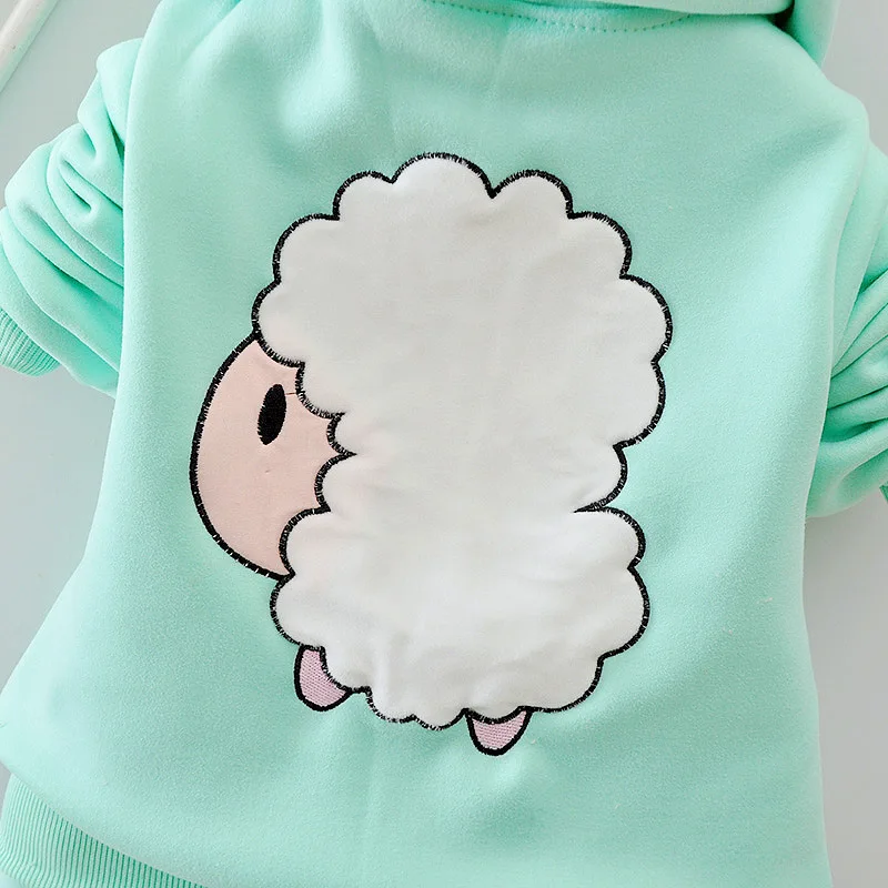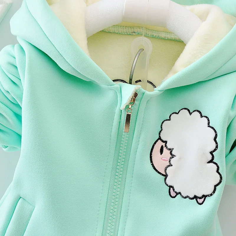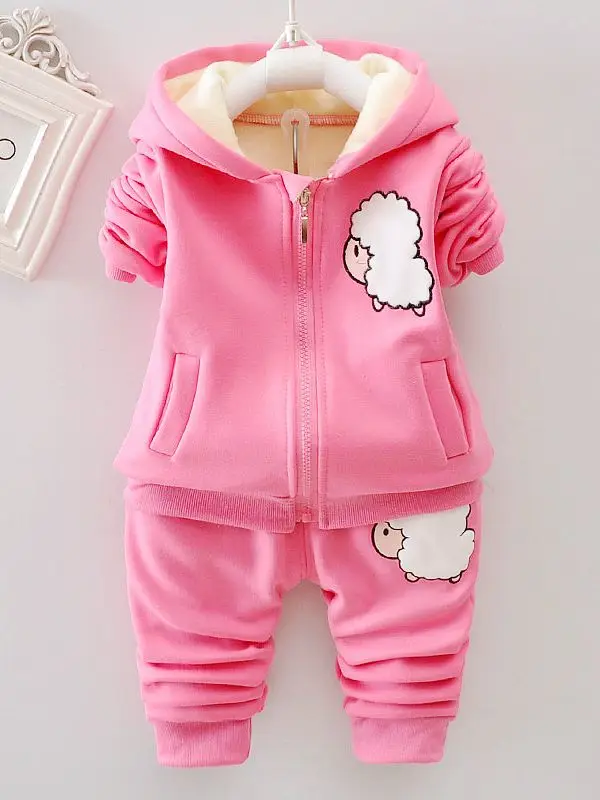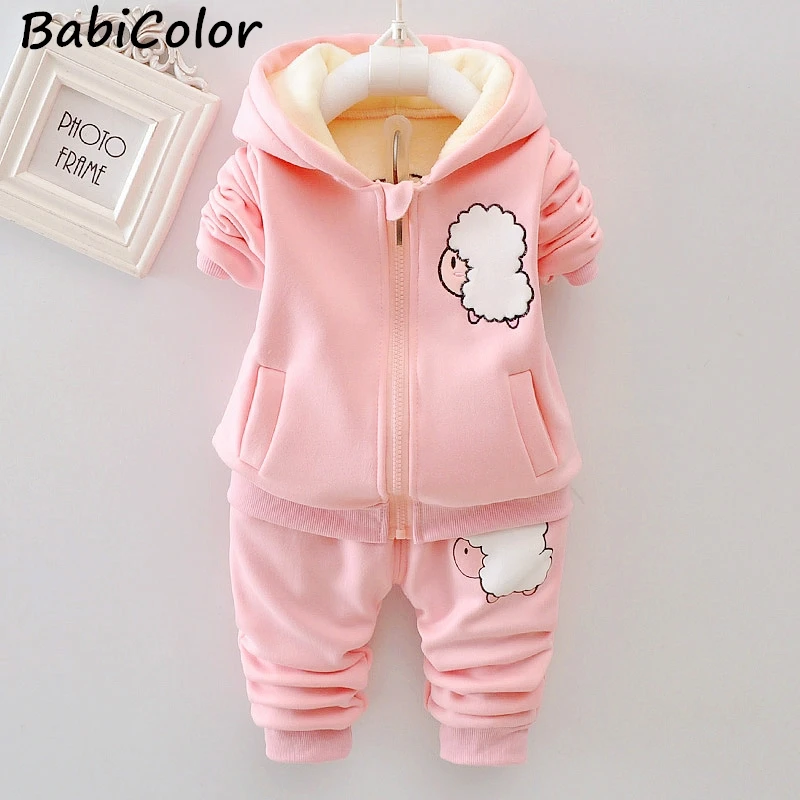 Одежда для маленьких девочек новый зимний детский костюм с капюшоном и рисунком + штаны утепленная бархатная одежда из двух предметов для маленьких девочек