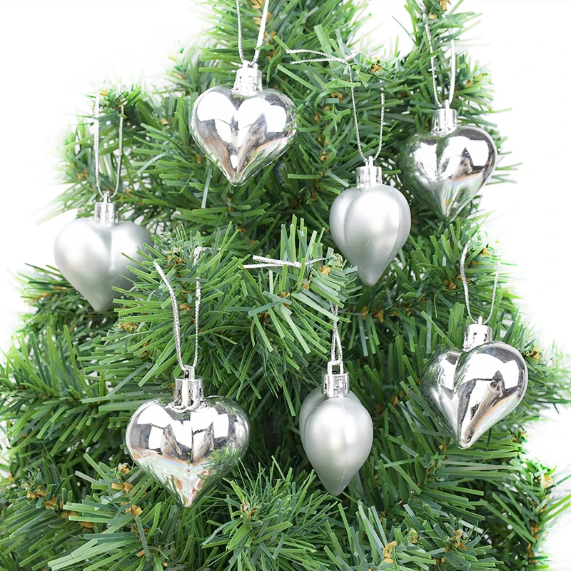 12 шт.коробка шар формы сердца для новогодней елки подвесные аксессуары Орнамент розовые красные пластиковые шары Рождественское украшение новогодний декор