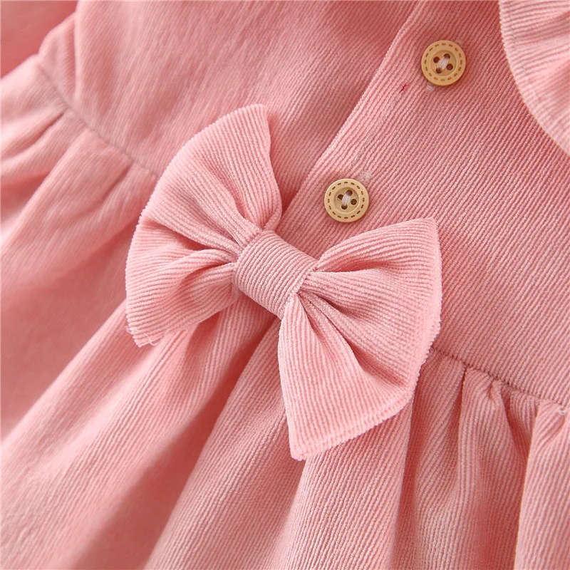 Платье для маленьких девочек, Осень-зима, милое платье принцессы с длинным рукавом и бантом вечерние ринки, платье для новорожденных, детская одежда
