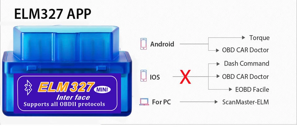 1. Он работает только с автомобилем (не может поддерживать дизельное топливо или грузовик).2.ELM327 может сделать большинство автомобилей OBDII, но это не может сделать все модели.3. Он не может работать на IOS, если вам нужен товар, который работает на IOS, пожалуйста, купите наш WIFI ELM327.