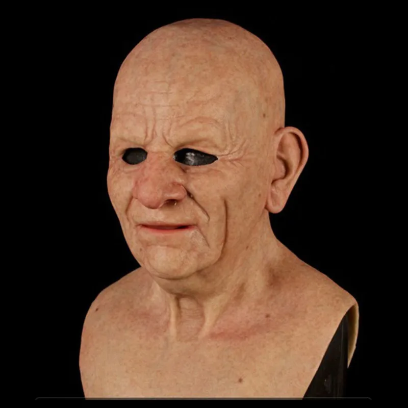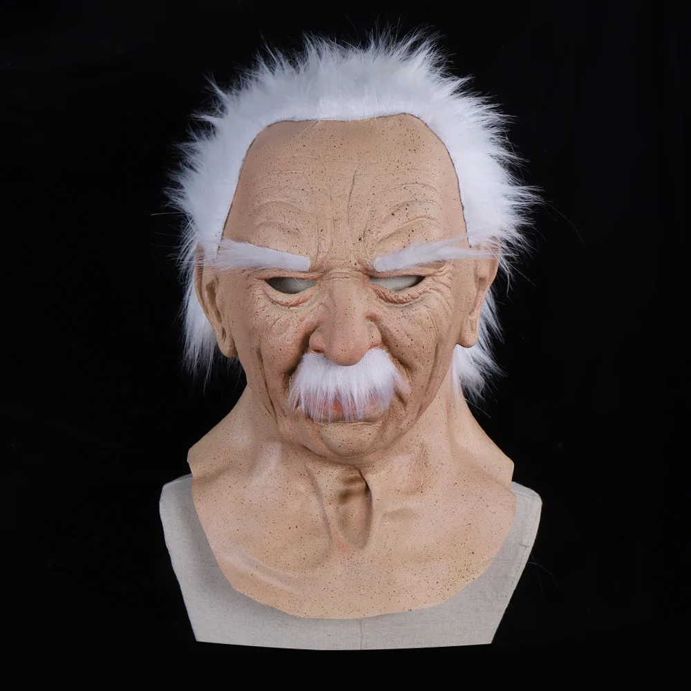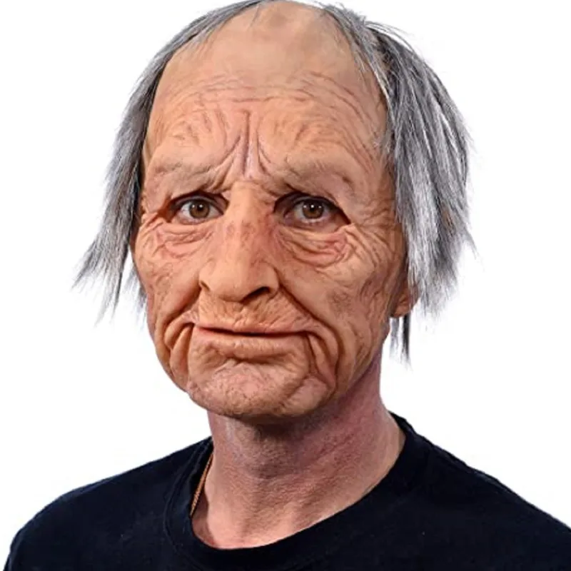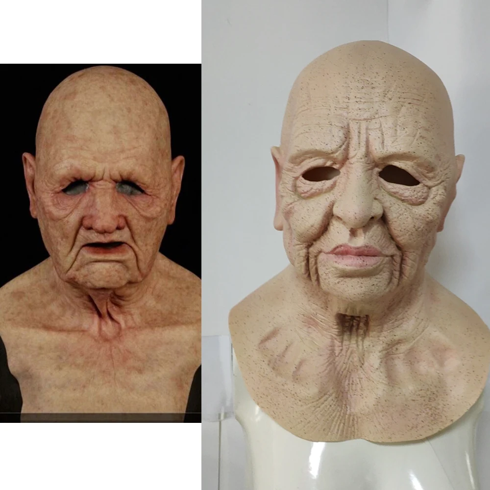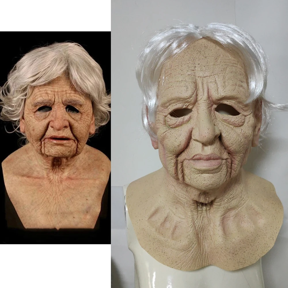Латексная Маска для пожилых людей, маска для Хэллоуина со складками, Женский страшный фильм, страшный парик, маска для косплея
