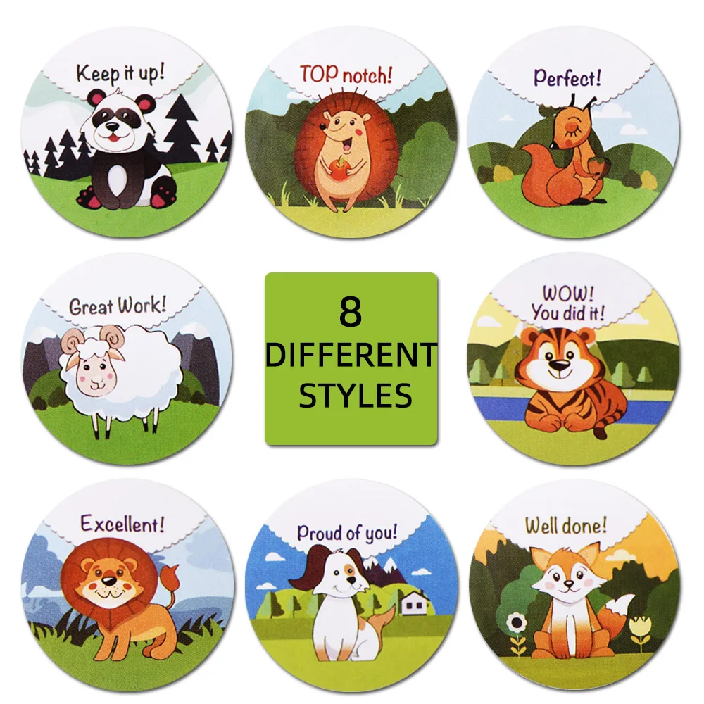 1 дюйм наклейки для лица для детей 500 шт/рулон награда наклейки "вау! Вы сделали это 'Поощряйте этикетки милые животные мотивационные наклейки