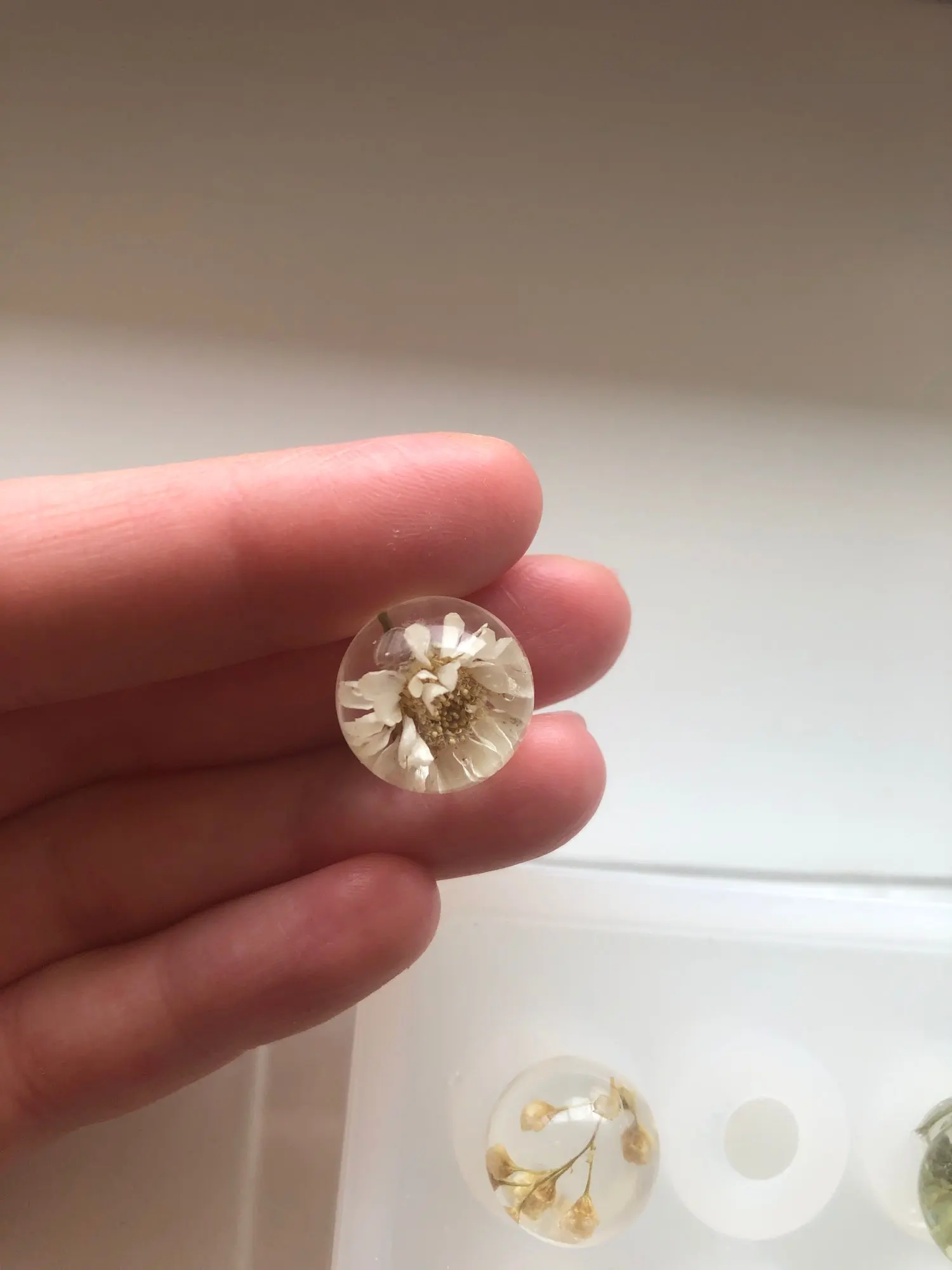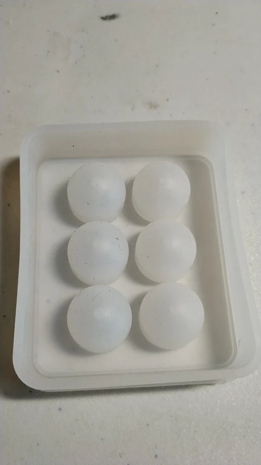 Искала сферы 16 мм, что бы было несколько штук в одной форме, для конвейерной заливки, но не могла найти. Очень долго искала на Али. Нашла на тот момент только с отверстием эти, для бусин. Решила заказать и срезать лезвием аккуратно эти палочки внутри. Тогда получится сфера. Срезала аккуратно что бы в форме была чуть лунка, что бы в готовой сфере был на этом месте бугорок, легче потом спилить чем дозаливать. Все равно нужна шлифовка и полировка. Но у бусин и так достойный блеск. Так и сделала. Пришлось выкручиваться. Вот что получилось. P.S. Через блоггера потом позже нашла все таки такие же сферы, но и эти служат хорошо.