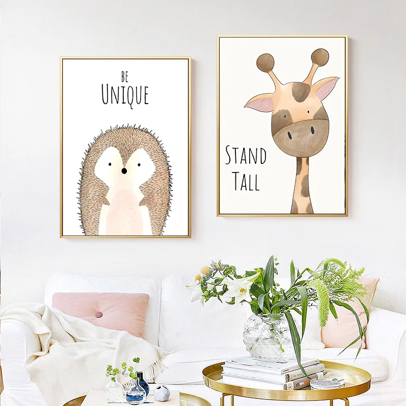 Лев, рисунок на холсте Декор детской комнаты Мультяшные животные настенный плакат скандинавский динозавр Настенная картина для детской комнаты