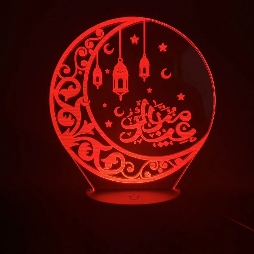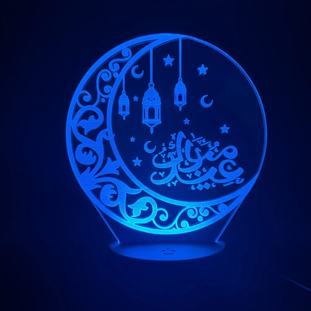 Рамадан молитва украшение 3D светодиодный светильник Ислам ночной Светильник настольной богобоязненности мусульманских символ Коран Луна дома декоративные Luminaria Lampara