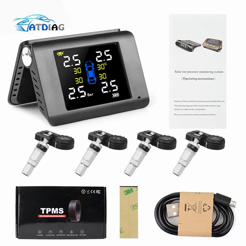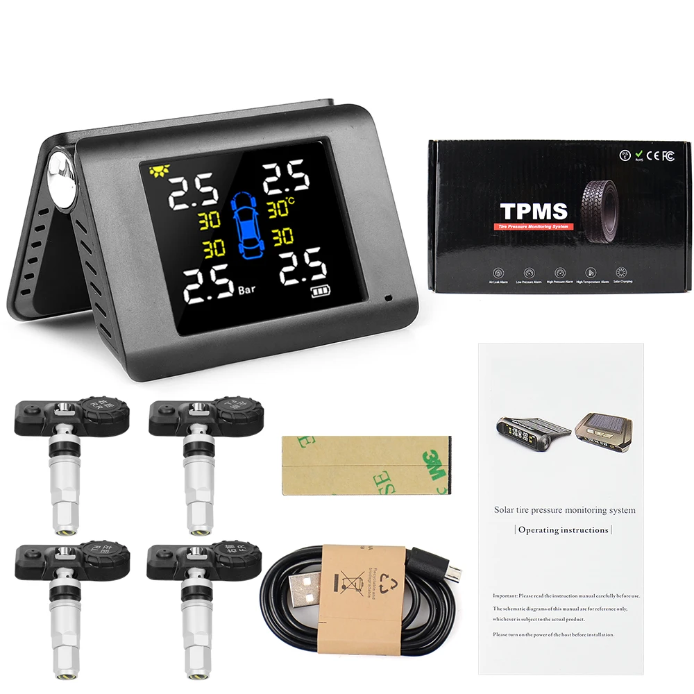 Состав солнечной TPMS такой же, как у обычных TPMS (система контроля давления в шинах), которая состоит из солнечного TFT экрана, принимающего дисплей и четырех датчиков давления/излучателей. В качестве мощной панели генерации энергии долгий срок службы, чтобы обеспечить в любое время зарядку, так что прием монитора питания более надежный и долговечный; даже в условиях отсутствия солнечного света в темной среде, дождя и снега погодные условия по-прежнему могут служить более 15 дней, есть интерфейс USB зарядного устройства, Устройство с двойной зарядной системой обеспечивает постоянный срок службы устройства.